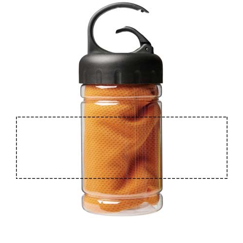 Schnell einziehendes, schnell trocknendes und waschbares kühlendes Handtuch aus starkem und strapazierfähigem Polyester, perfekt um während des Trainings oder bei allen Outdoor-Aktivitäten kühl zu bleiben. Wird in einem PET-Behälter mit Tragegriff und integriertem Karabinerhaken für einfaches Tragen geliefert. Erhältlich in 5 frischen Farben. Große Deko-Logofläche auf dem Behälter, Dekoration auch auf dem Kühlhandtuch selbst möglich. Größe 30 x 80 cm.