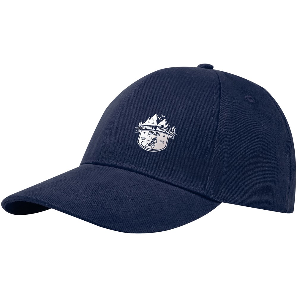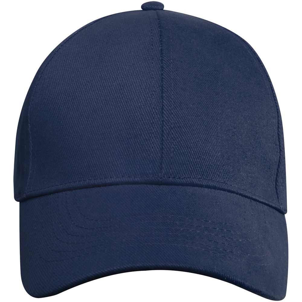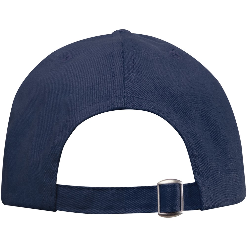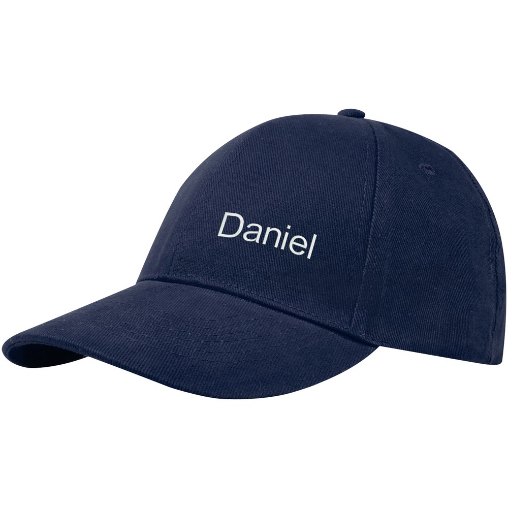 Nachhaltige Kappe für Werbezwecke. Vorgebogener Schirm. Gestickte Ösen zur Belüftung. Dreifach-Gleitverschluss mit Metallschnalle.