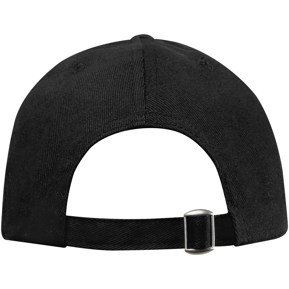 Nachhaltige Kappe für Werbezwecke. Vorgebogener Schirm. Gestickte Ösen zur Belüftung. Dreifach-Gleitverschluss mit Metallschnalle.