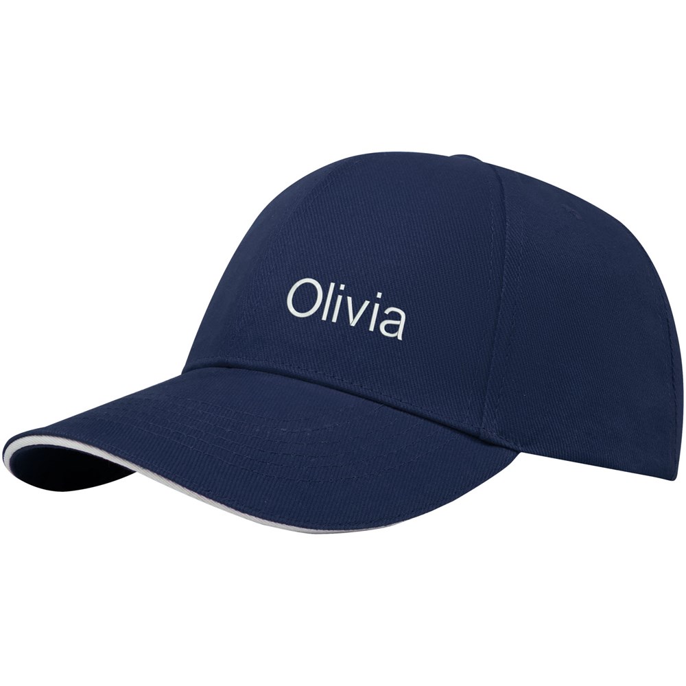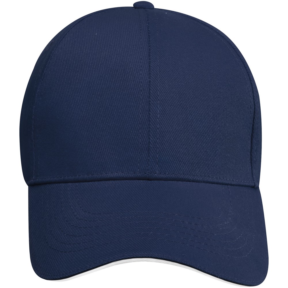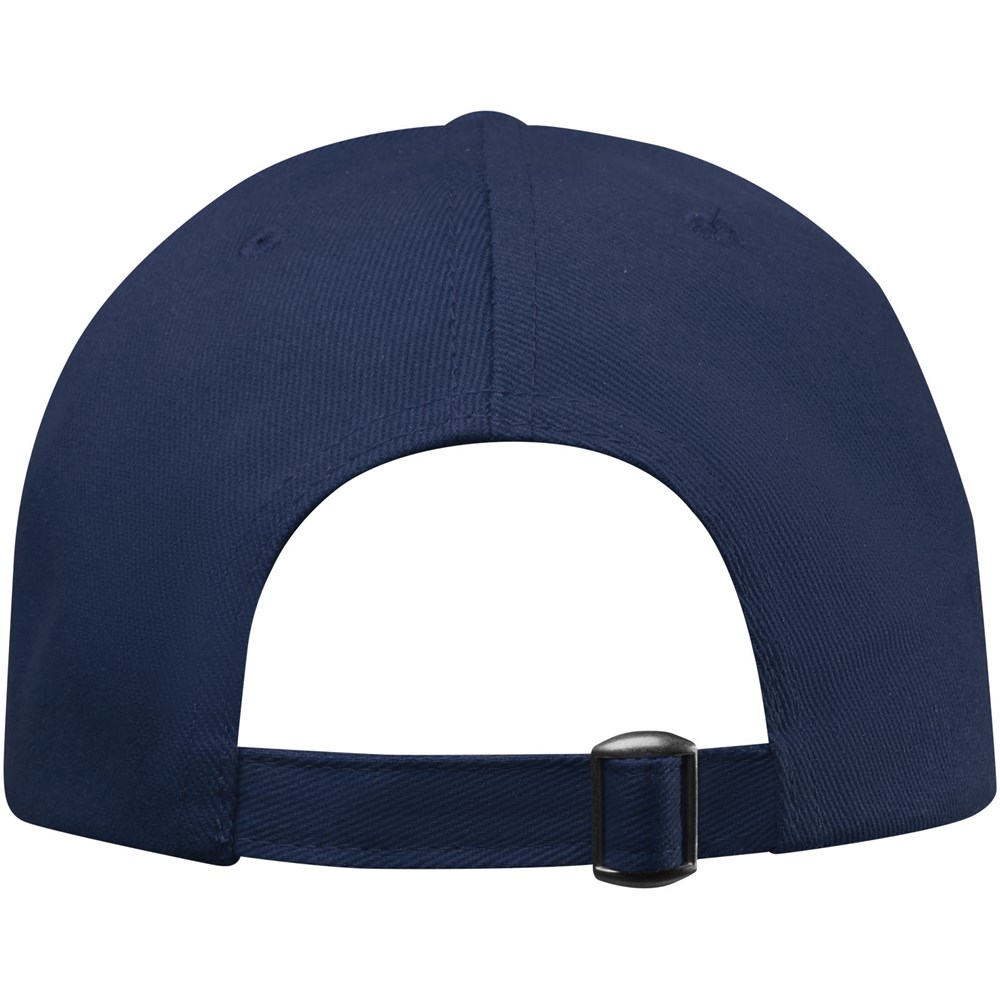 Nachhaltige Kappe für Werbezwecke. Vorgebogener Schirm mit Sandwichdesign. Gestickte Ösen zur Belüftung. Dreifach-Gleitverschluss mit Metallschnalle.