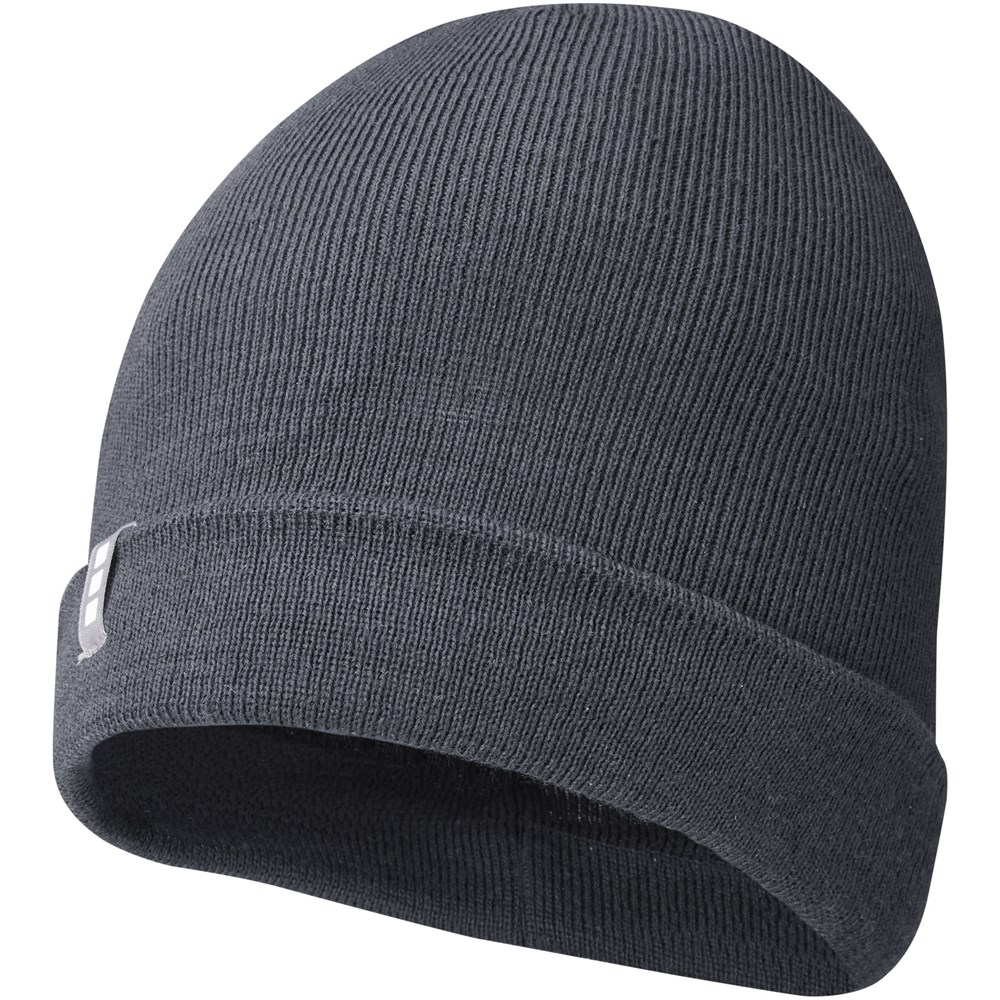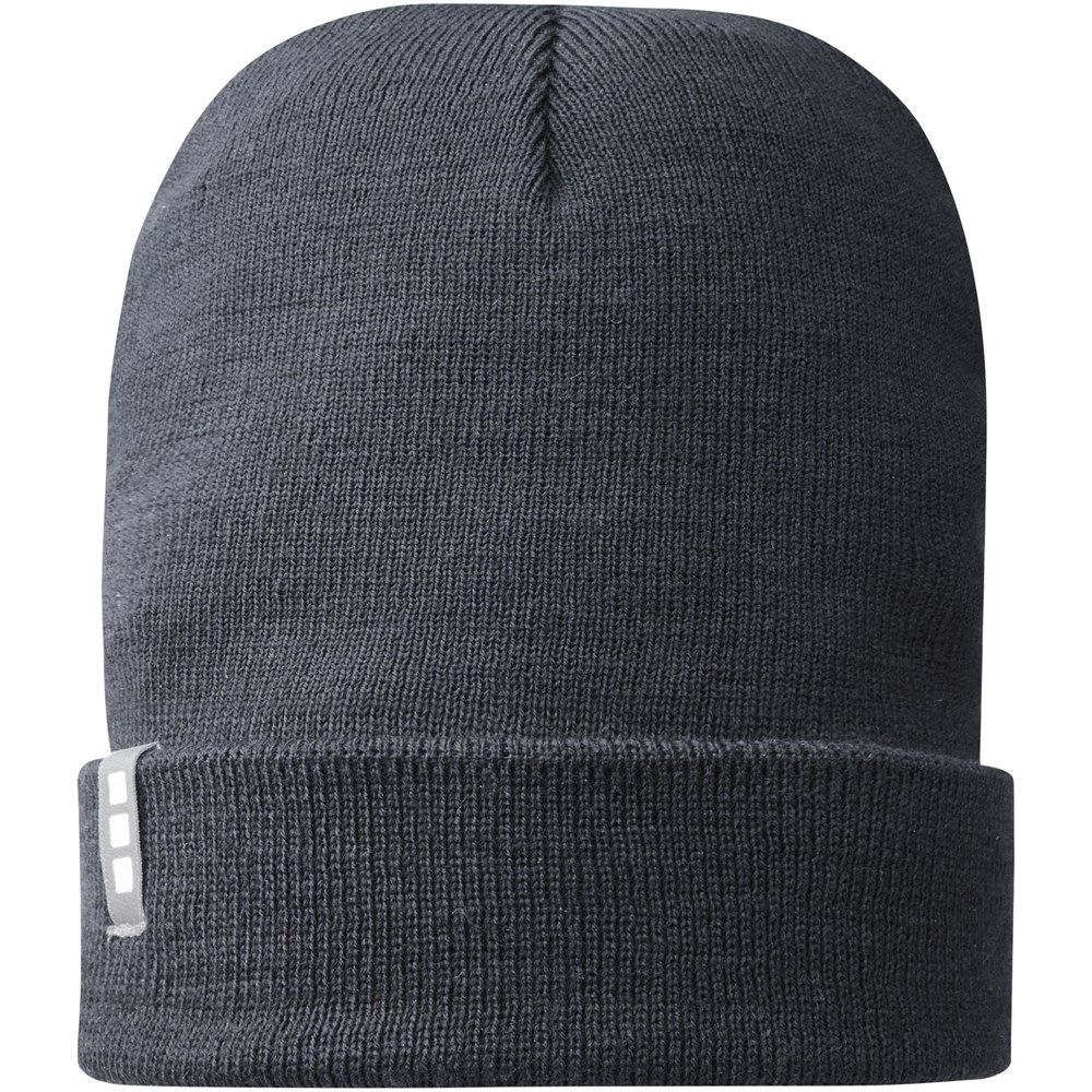 Nachhaltige Mütze für Werbezwecke. Einlagige Mütze mit doppelt gefaltetem Rand. Schlaufenetikett mit Markenlogo. Polylana®-Faser ist die schonende Alternative zu 100 % Acryl- und Wollfasern, spart Wasser, Energie und reduziert den CO2-Ausstoß während des Produktions- und Färbeprozesses. Im Vergleich zu Acrylfasern werden für jede Mütze aus Polylana®-Fasern folgende Einsparungen erzielt: 2,77 Liter Wasser, 5,16 MJ Energie und 0,06 kg GhG (CO2). Die Einsparungen basieren auf validierten Daten der Ökobilanz (LCA).