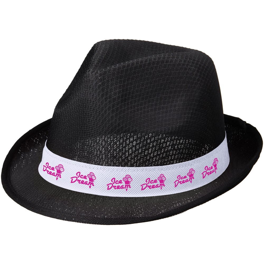 Trilby Set aus Hut und Band. Hut: 100 % Polyester. Hutband: 100 g/m² Polypropylen Faservlies.