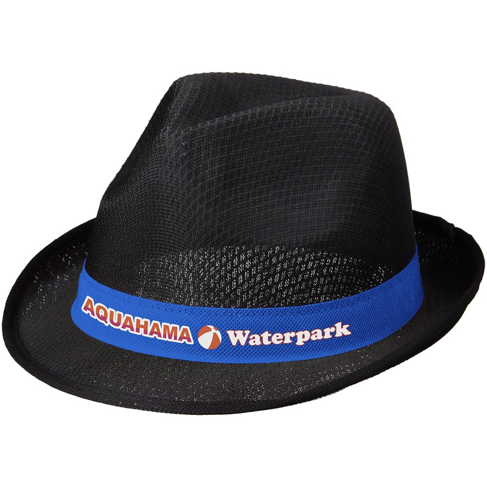 Trilby Set aus Hut und Band. Hut: 100 % Polyester. Hutband: 100 g/m² Polypropylen Faservlies.