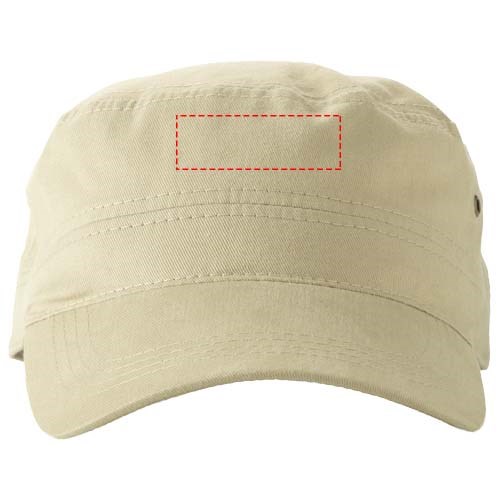 Metallösen. Klettverschluss aus Stoff mit Schlaufe. Kopfumfang: 58 cm.