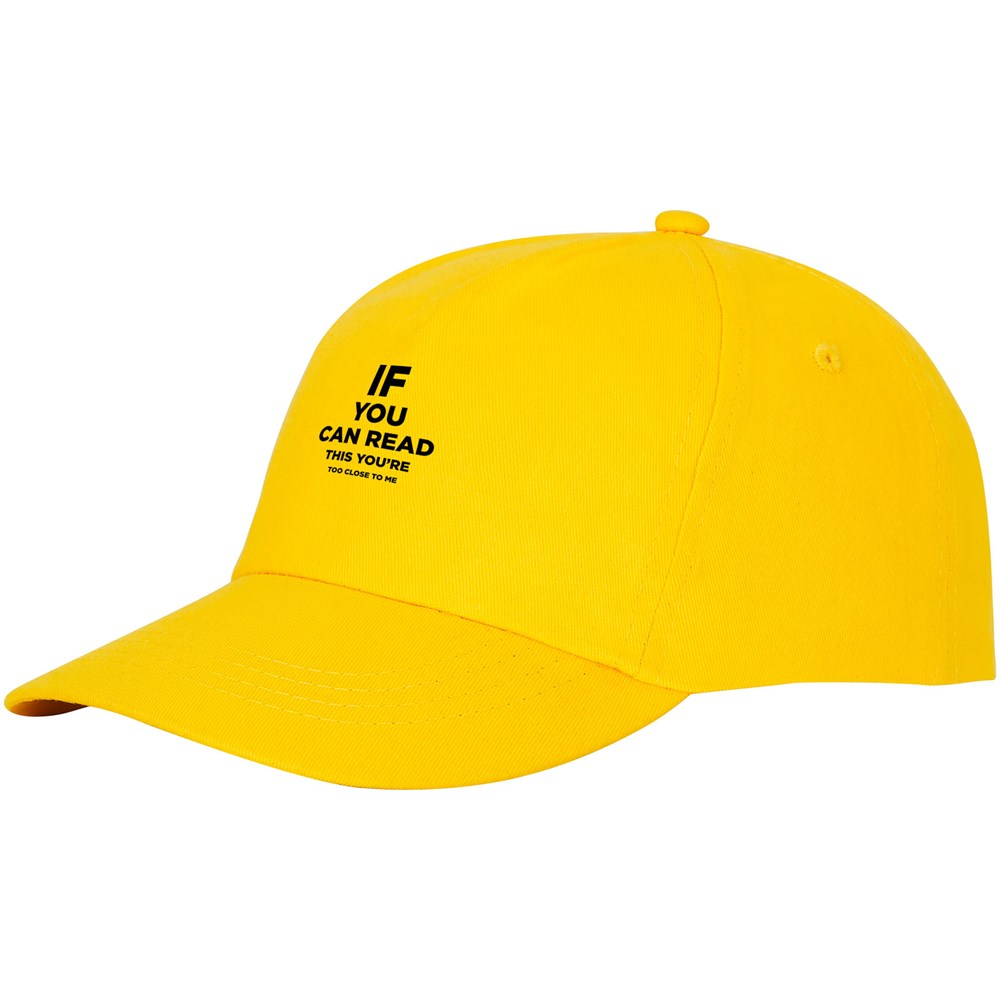 Gestickte Ösen zur Belüftung. Klettverschluss aus Stoff und Schlaufenverschluss.