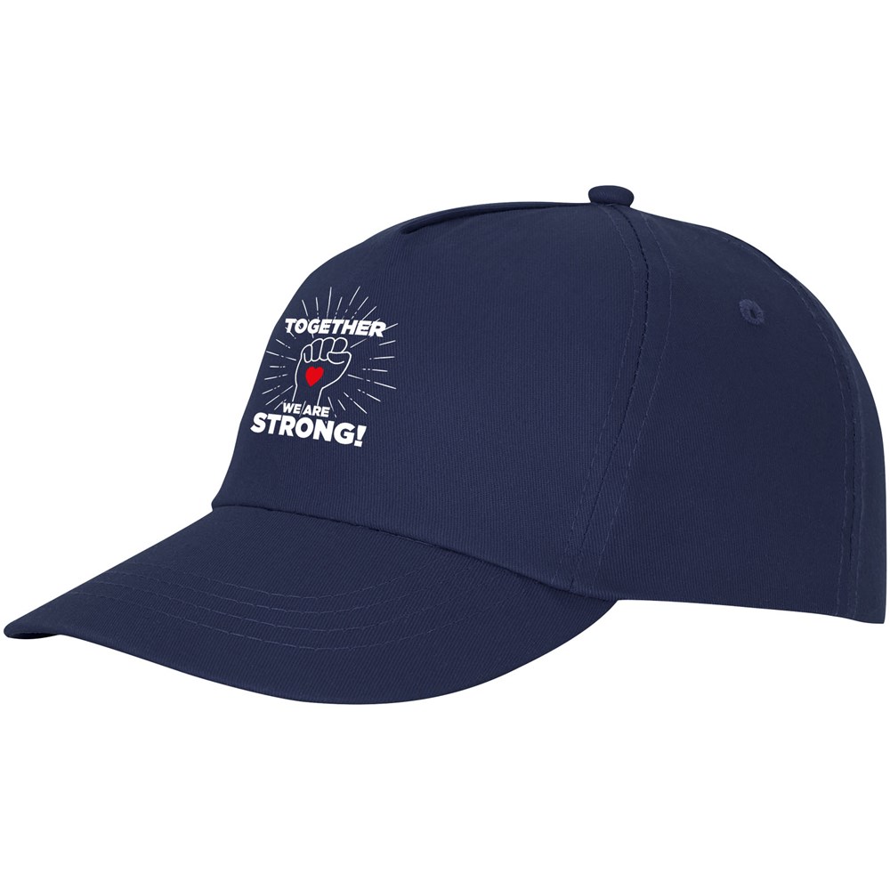 Gestickte Ösen zur Belüftung. Klettverschluss aus Stoff und Schlaufenverschluss.