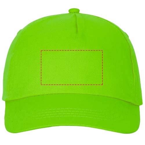 Gestickte Ösen zur Belüftung. Klettverschluss aus Stoff und Schlaufenverschluss.