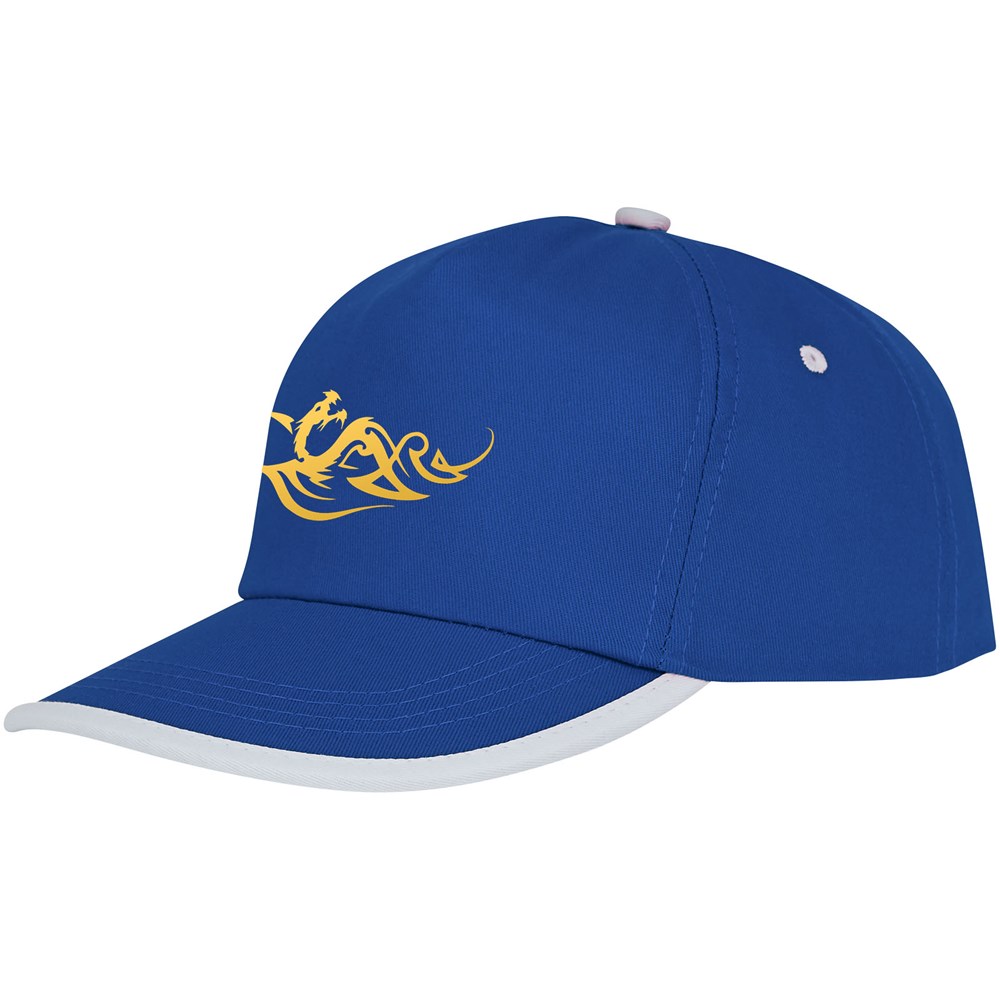 Paspelierung Details. Gestickte Ösen zur Belüftung. Klettverschluss aus Stoff und Schlaufenverschluss. Kopfumfang: 58 cm.