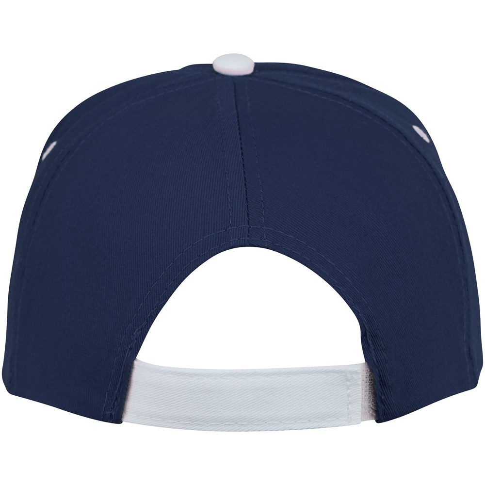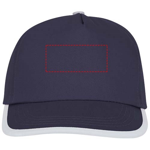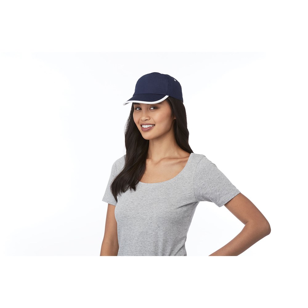 Paspelierung Details. Gestickte Ösen zur Belüftung. Klettverschluss aus Stoff und Schlaufenverschluss. Kopfumfang: 58 cm.