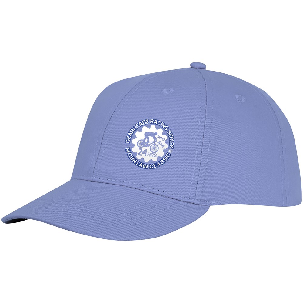 Gestickte Ösen zur Belüftung. Klettverschluss aus Stoff und Schlaufenverschluss. Strukturierte vordere Segmente. Baumwollstoffdetails auf der Innenseite. Kopfumfang: 58 cm.