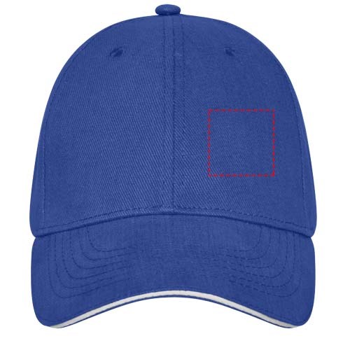 Gebogener Schirm mit Sandwich. Gestickte Ösen zur Belüftung. Metallverschluss.
