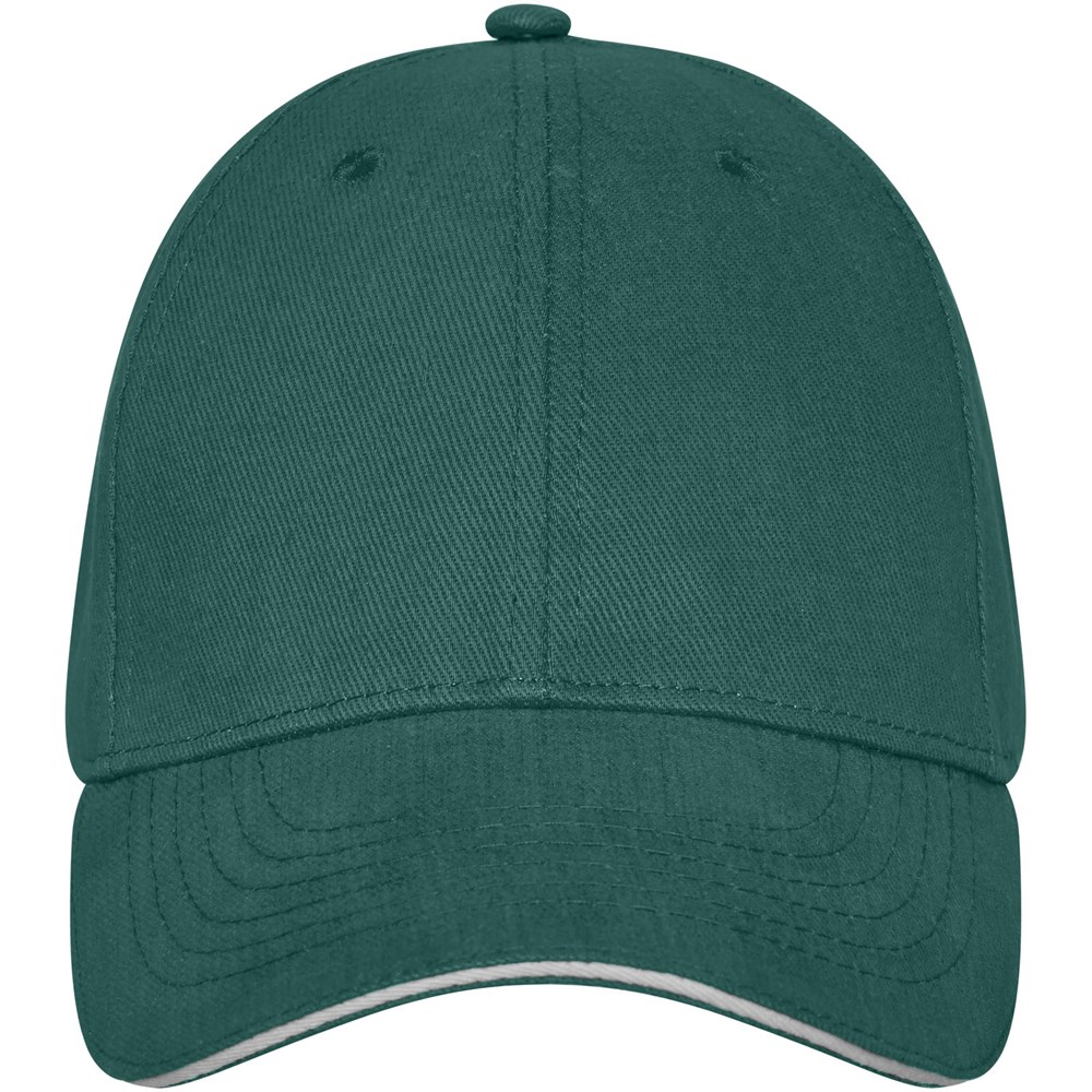 Gebogener Schirm mit Sandwich. Gestickte Ösen zur Belüftung. Metallverschluss.