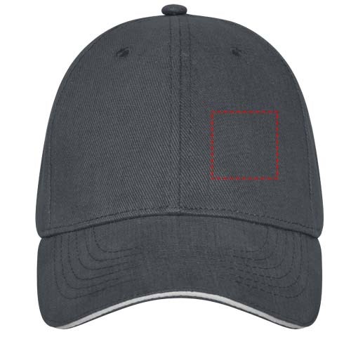 Gebogener Schirm mit Sandwich. Gestickte Ösen zur Belüftung. Metallverschluss.