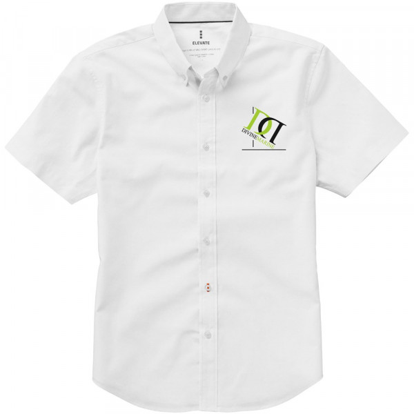 Button-Down Kragen. Unteres zweites Knopfloch ist orange umstickt. Satin Nackenband . Gravierte perlmut-farbige Knöpfe. Transfer Hauptlabel für den etikettfreien Komfort..