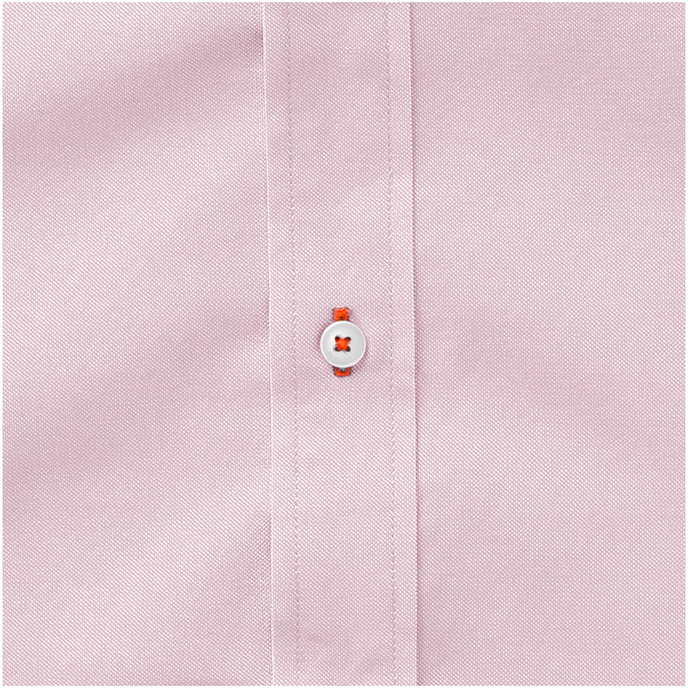 Button-Down Kragen. Mit Knopf einstellbares Bündchen mit Falte. Unteres zweites Knopfloch ist orange umstickt. Satin Nackenband. Gravierte perlmut-farbige Knöpfe. Transfer Hauptlabel für den etikettfreien Komfort.