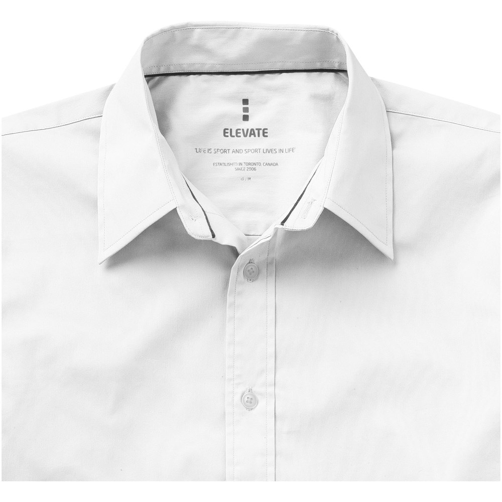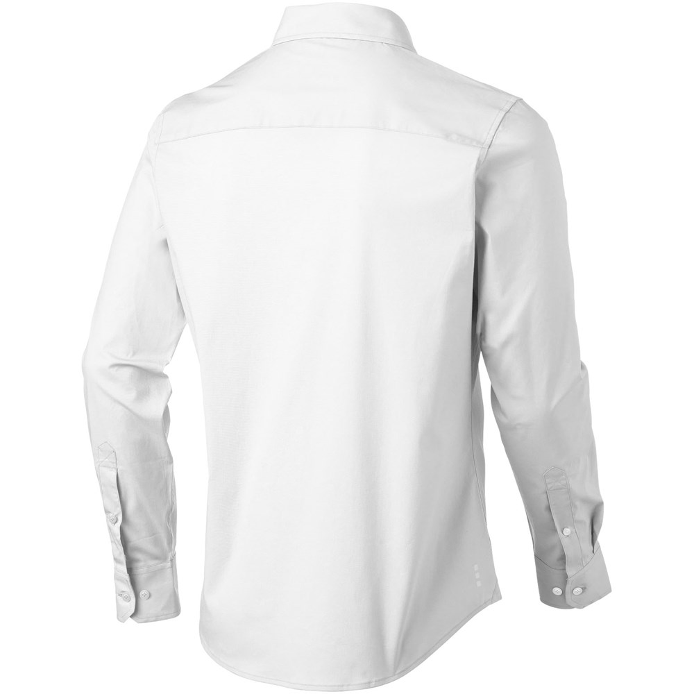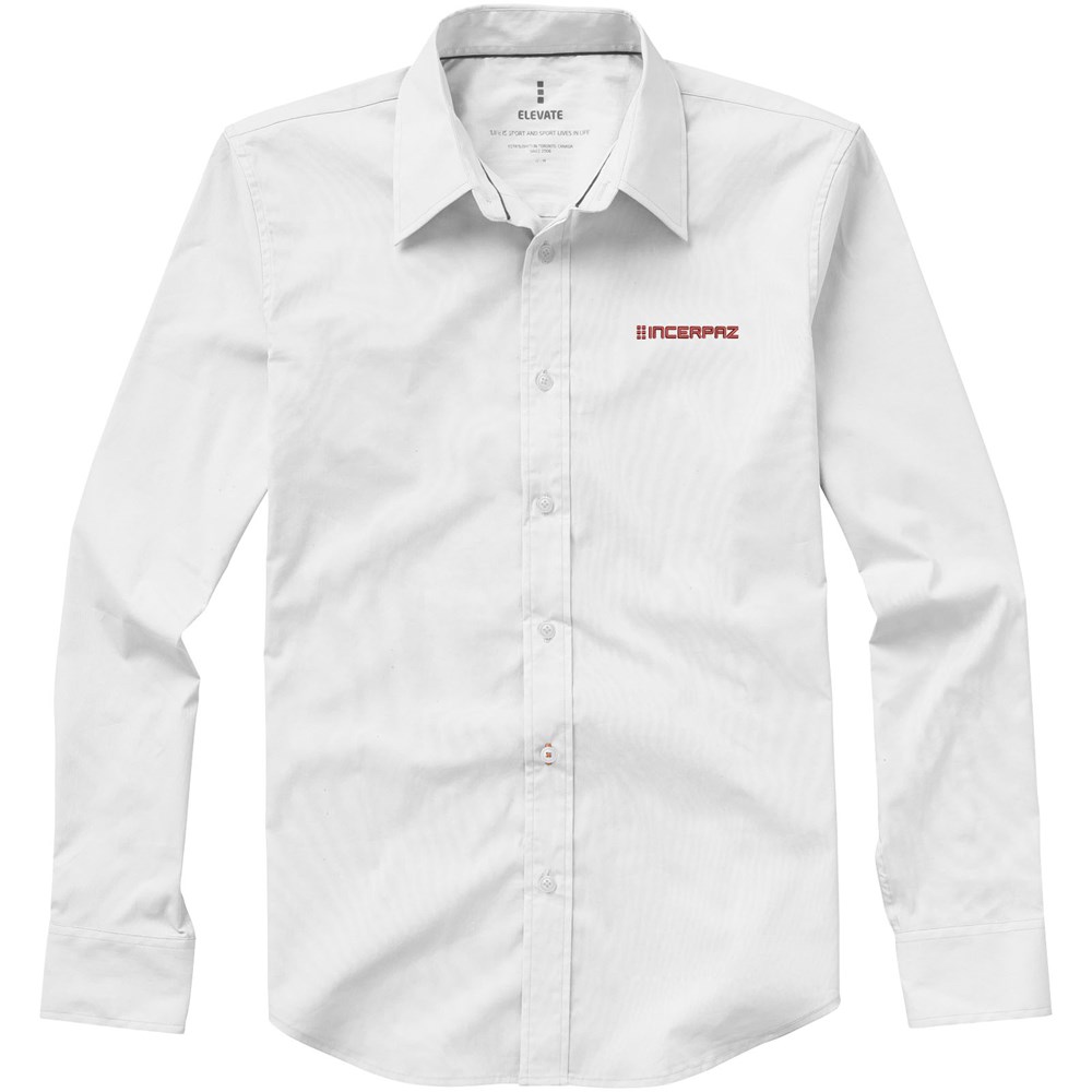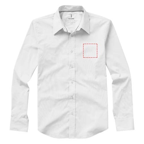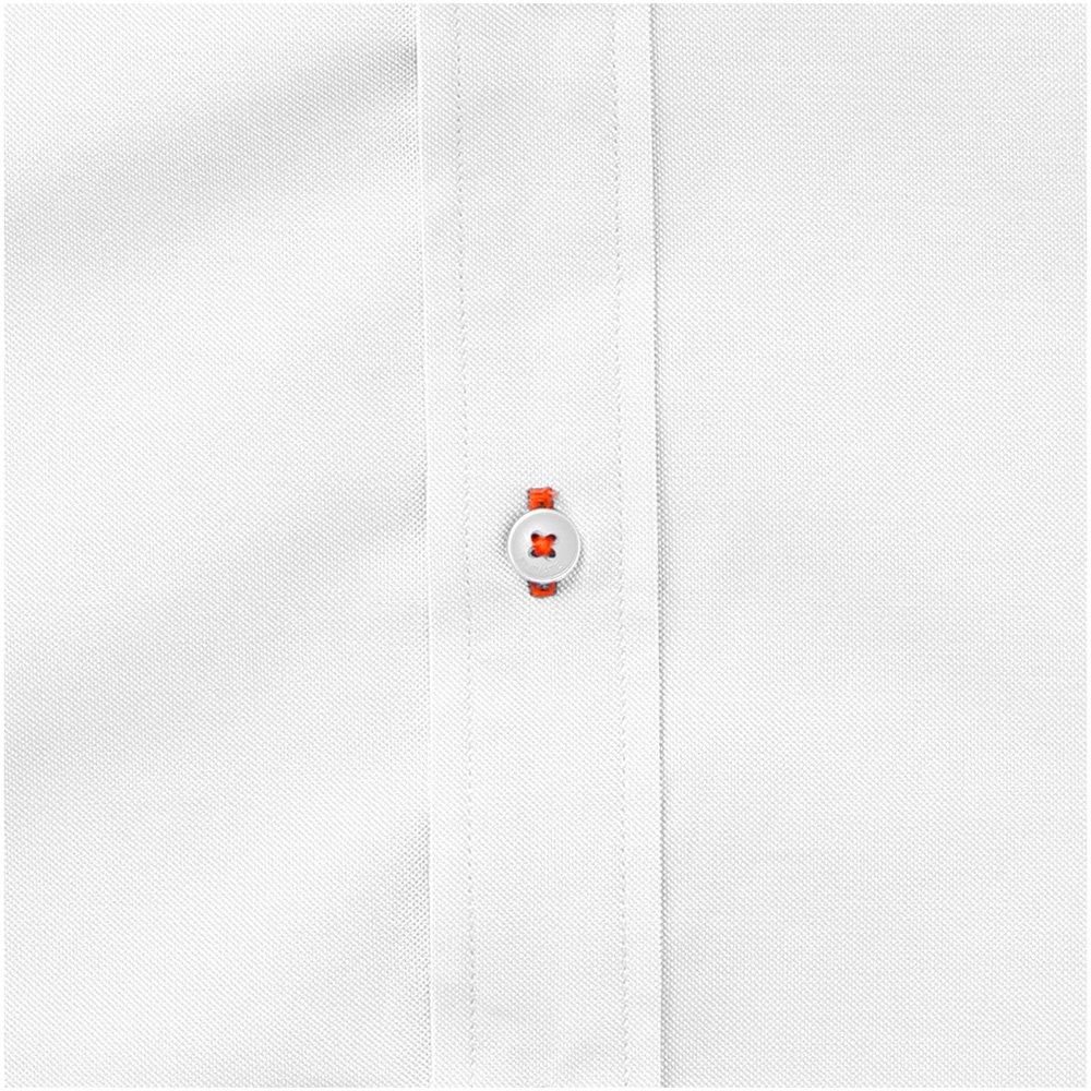 Mit Knopf einstellbares Bündchen mit Falte. Unteres zweites Knopfloch ist orange umstickt. Satin Nackenband . Gravierte perlmut-farbige Knöpfe. Transfer Hauptlabel für den etikettfreien Komfort..
