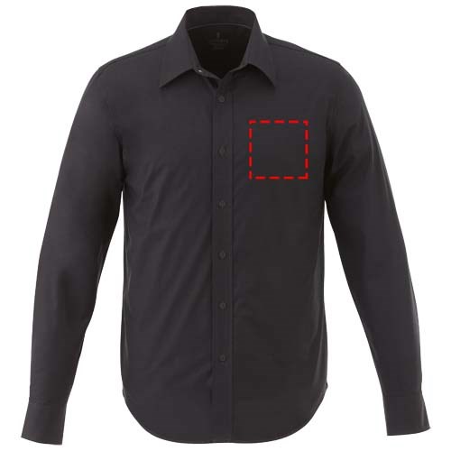 Button-Down-Kragen mit verdecktem Knopf. Stetch-Material. Mit Knopf einstellbares Bündchen mit Falte. Satin Nackenband. Gravierte Ton-in-Ton Knöpfe. Transfer Hauptlabel für den etikettfreien Komfort.