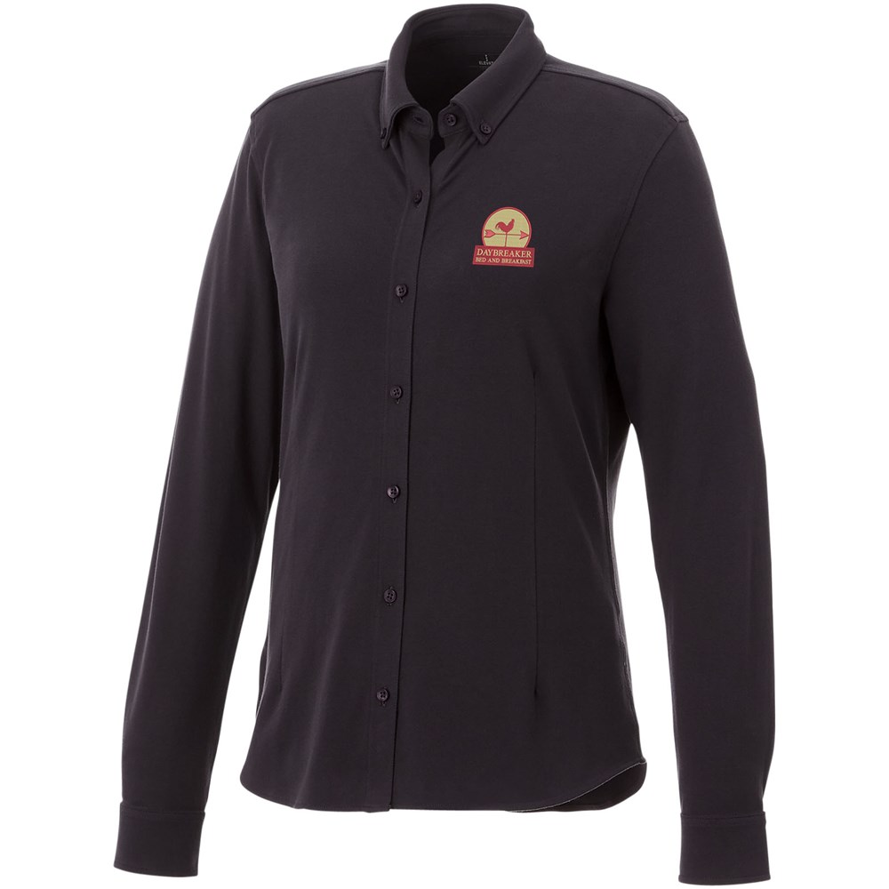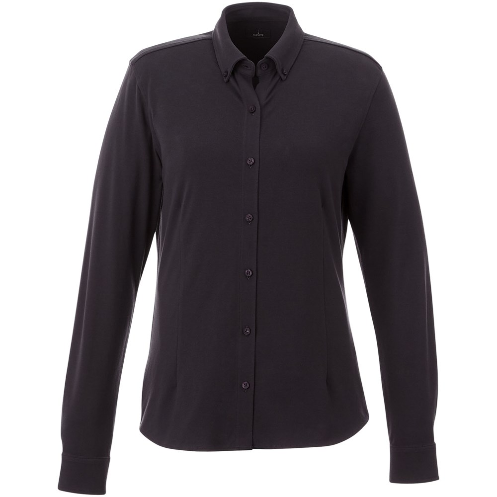 Stoff Einfassung am Kragen. Stetch-Material. Mit Knopf einstellbares Bündchen mit Falte. Button-Down Kragen. Anliegende Seitenähte und tailliert für schmeichelnde Passform. Satin Nackenband. Gravierte Ton-in-Ton Knöpfe. Gewebtes Hauptlabel.