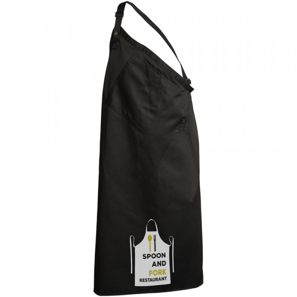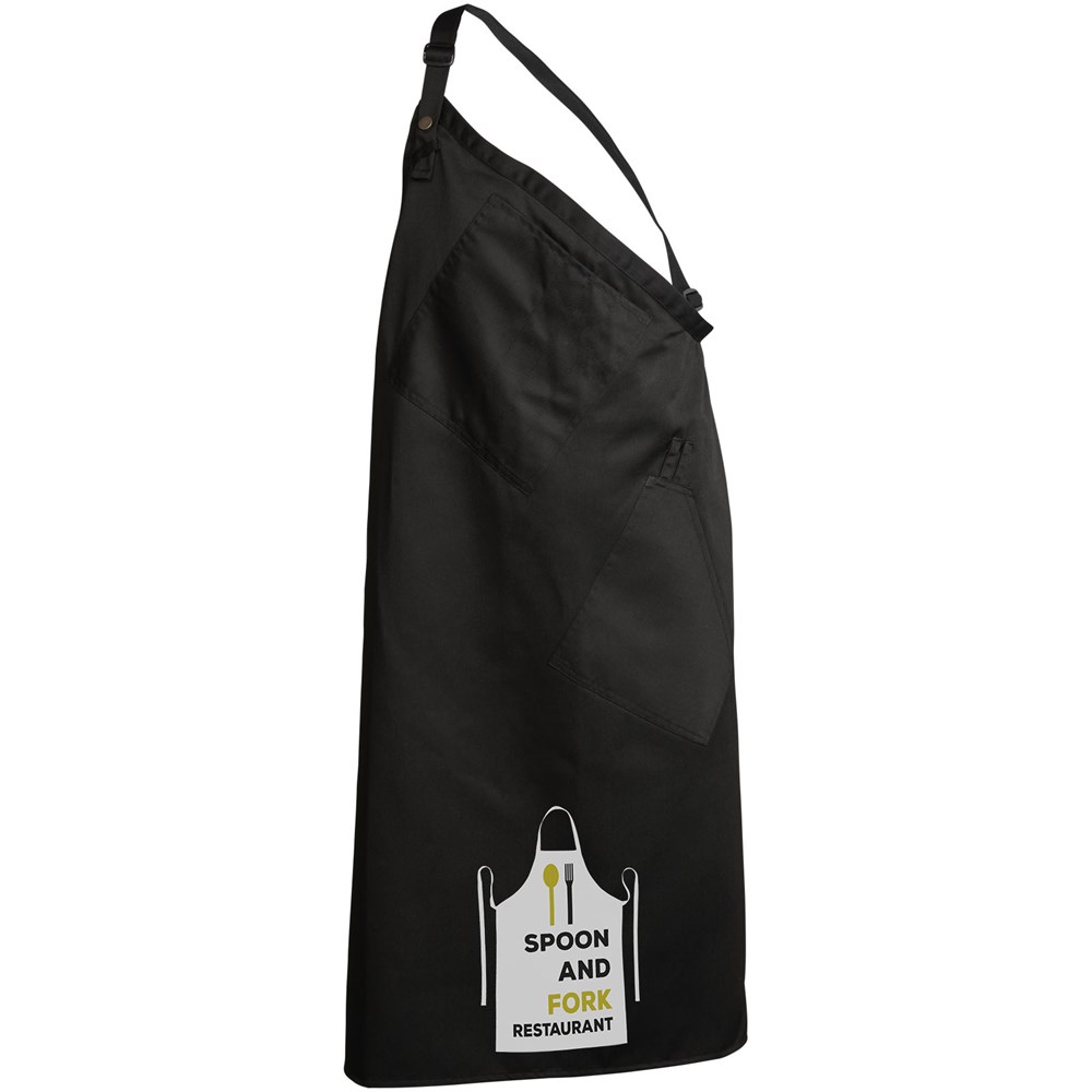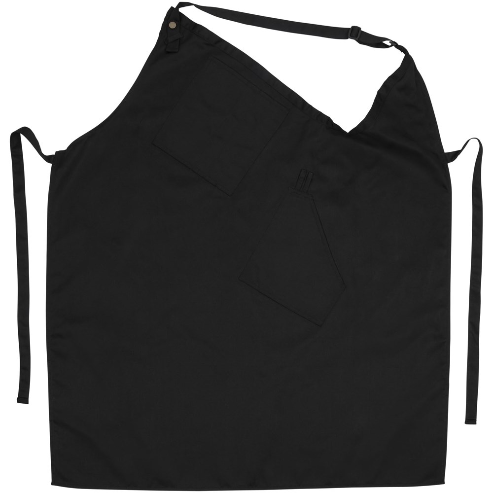 Asymmetrische Schürze aus Twillstoff mit verstellbarem Riemen, 2 Taschen, einer Handtuchtasche und Rückenverschluss. Hergestellt aus 65 % Polyester und 35 % Baumwollstoff.