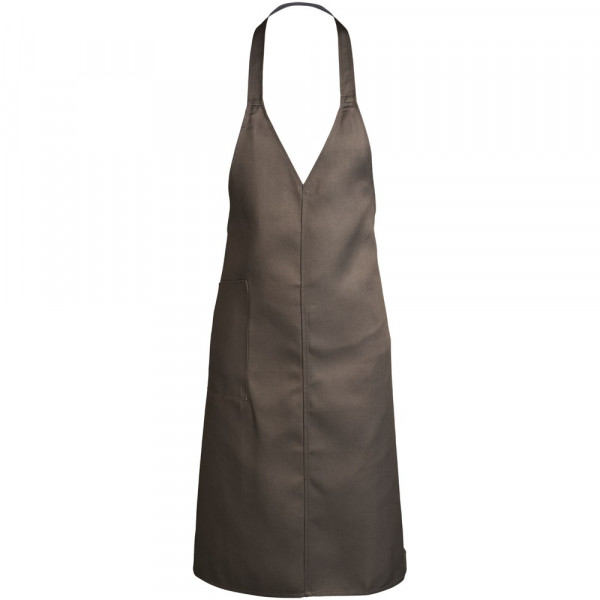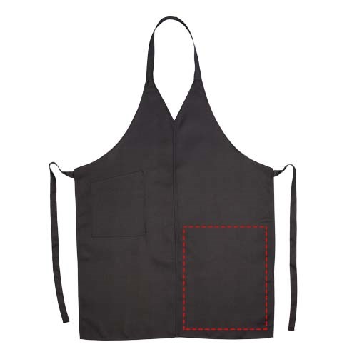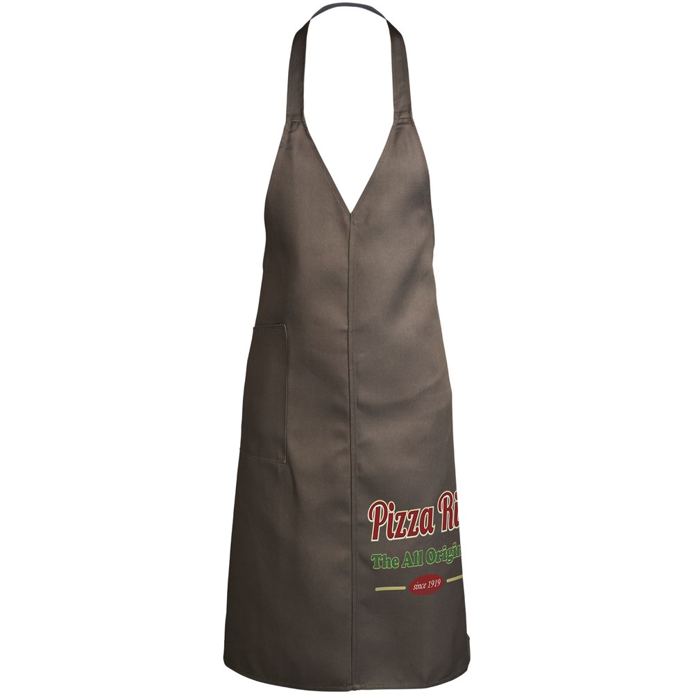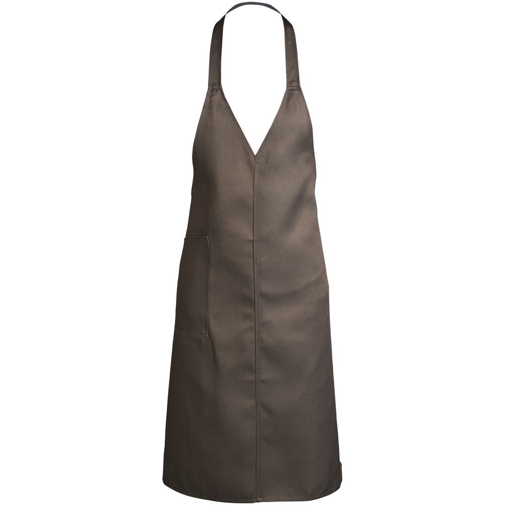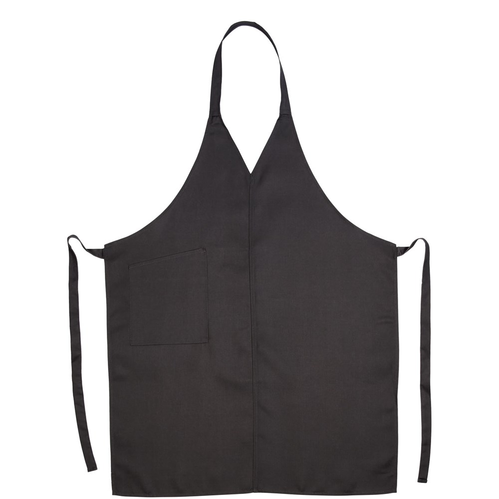 Schürze mit V-Ausschnitt aus Twillstoff mit 1 Tasche und Schnürverschluss hinten. Hergestellt aus 90 % Polyester und 10 % Baumwollstoff.