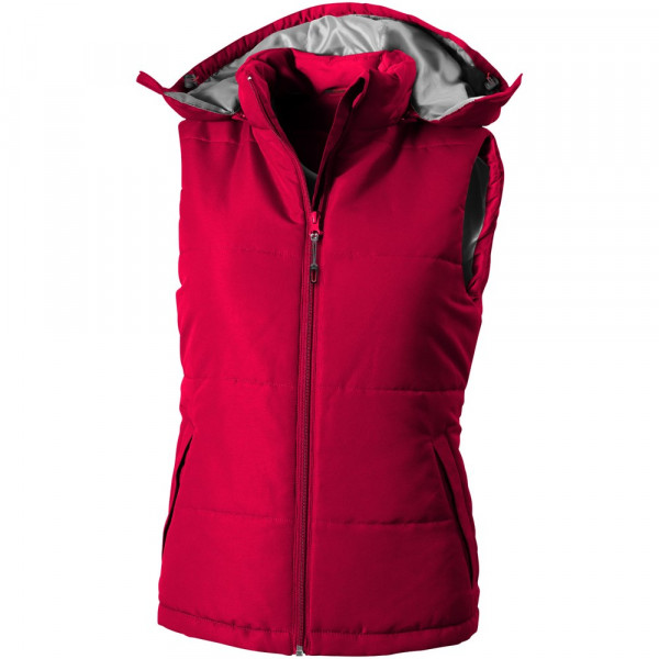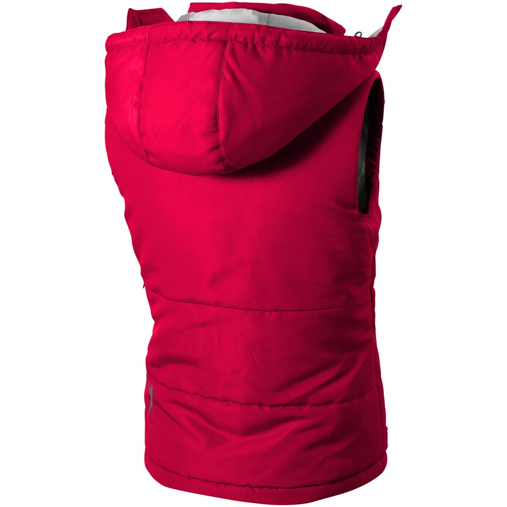 Abnehmbare Kapuze. Windschutz innen mit Kinnschutz. Elastischer Kordelzug mit verstellbaren Stoppern. Verdeckter Reißverschluss auf der Rückseite zwecks Werbeanbringung. Tailliert für eine schmeichelhafte Passform. Seitentaschen. Halbmond. Transfer Hauptlabel für den etikettfreien Komfort.