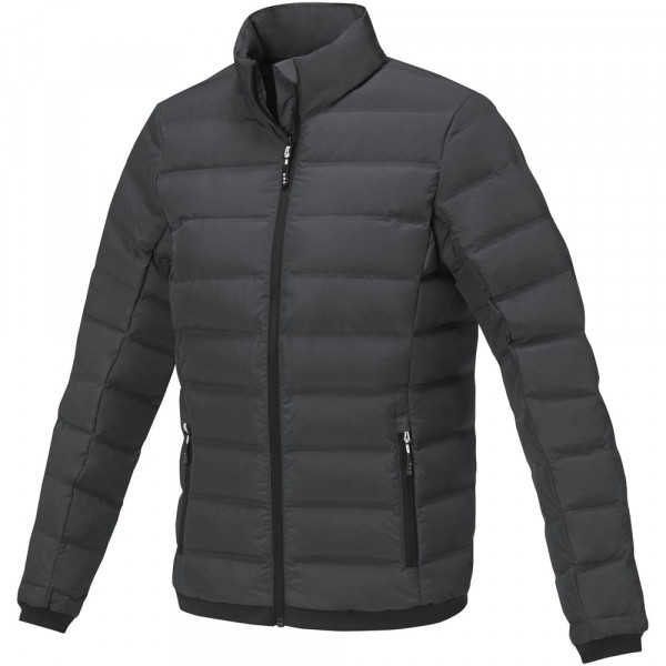 Heißsiegelsteppung. Füllung aus GRS und RDS zertifizierten Recycling Daunen. Windschutz innen mit Kinnriemen Elastische Rippenbündchen und Saum aus Flachstrick. Fronttaschen mit Reißverschluss. Leicht zu greifende Reißverschlusszieher. Aufhängeschlaufe aus Gummi mit Markenzeichen. Hauptetikett aus Heiß-Siebtransferdruck für Komfort ohne Etiketten