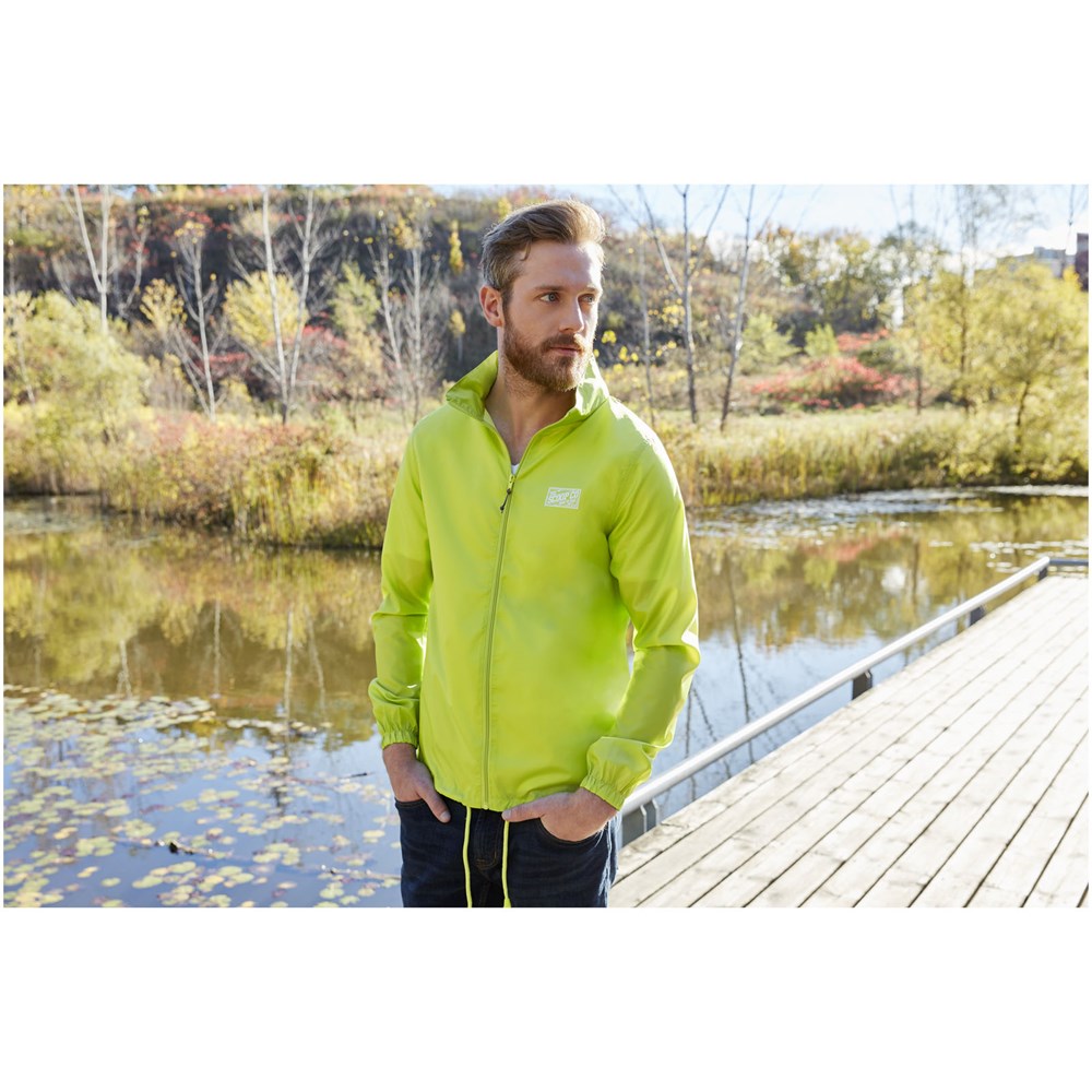 In der unteren linken Tasche verstaubar. Kapuze mit elastischer Öffnung, einrollbar . Kordelzug mit Stoppern am Saum. Zum Transport der Jacke, ist eine Seitentasche als Gürteltasche nutzbar.. Elastische Bündchen. Transfer Hauptlabel für den etikettfreien Komfort..