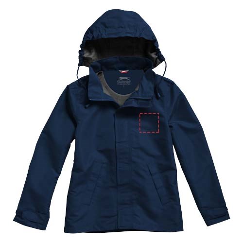 200mm wasserfest. Kapuze mit elastischer Öffnung, einrollbar . größenverstellbare Bündchen mit Klettverschluss. Fronttaschen. Innentasche. Halbmond. Aufhängeschlaufe. Transfer Hauptlabel für den etikettfreien Komfort..