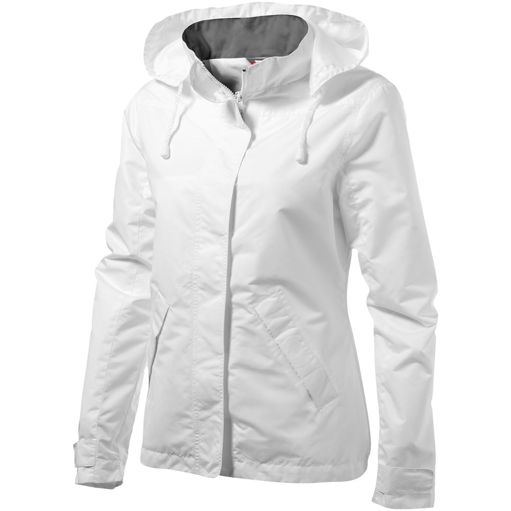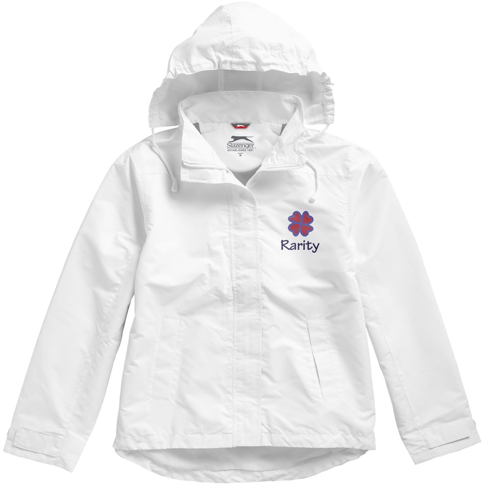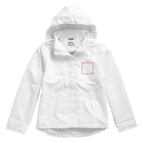 200mm wasserfest. Kapuze mit elastischer Öffnung, einrollbar . größenverstellbare Bündchen mit Klettverschluss. Tailliert für eine schmeichelhafte Passform. Innentasche. Fronttaschen. Halbmond. Aufhängeschlaufe. Transfer Hauptlabel für den etikettfreien Komfort..