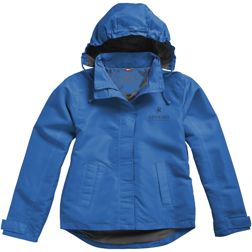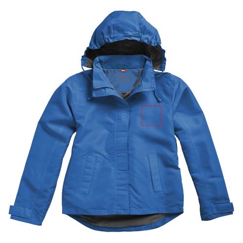200mm wasserfest. Kapuze mit elastischer Öffnung, einrollbar . größenverstellbare Bündchen mit Klettverschluss. Tailliert für eine schmeichelhafte Passform. Innentasche. Fronttaschen. Halbmond. Aufhängeschlaufe. Transfer Hauptlabel für den etikettfreien Komfort..