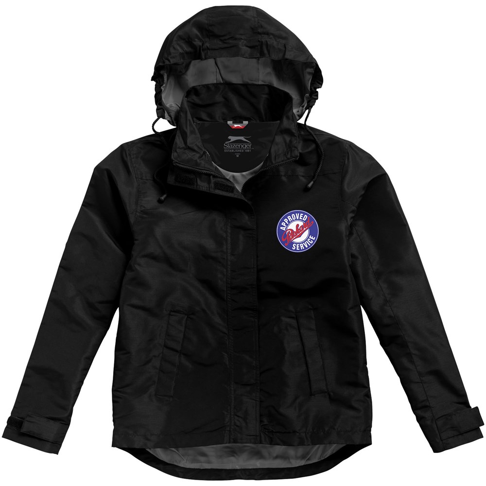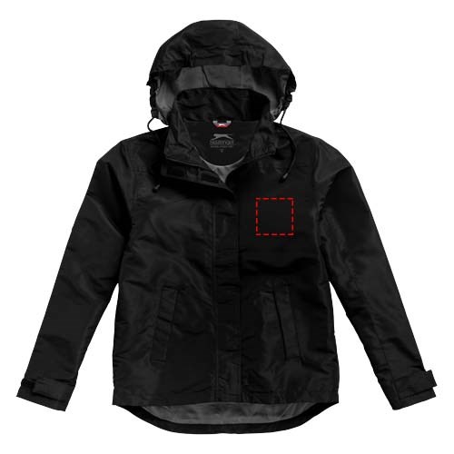 200mm wasserfest. Kapuze mit elastischer Öffnung, einrollbar . größenverstellbare Bündchen mit Klettverschluss. Tailliert für eine schmeichelhafte Passform. Innentasche. Fronttaschen. Halbmond. Aufhängeschlaufe. Transfer Hauptlabel für den etikettfreien Komfort..