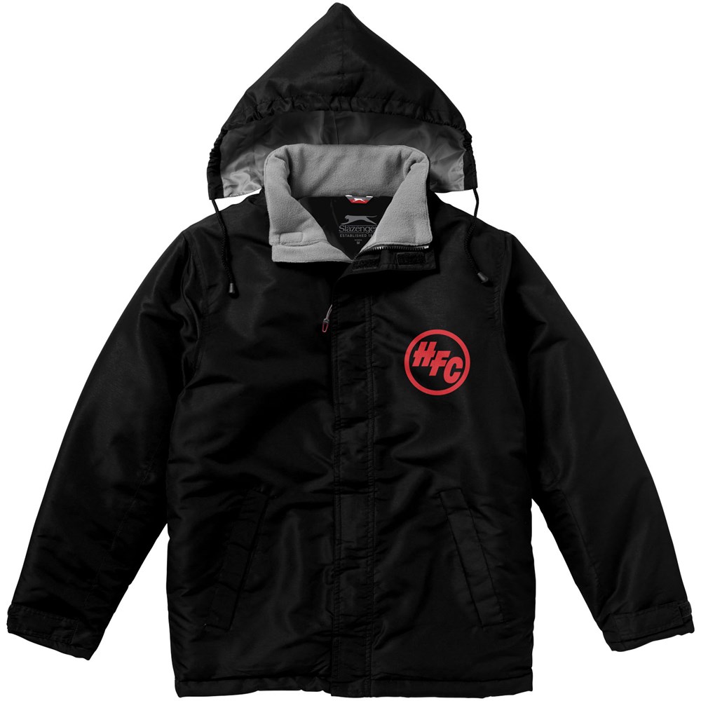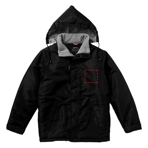 200mm wasserfest. Kapuze mit elastischer Öffnung, einrollbar . größenverstellbare Bündchen mit Klettverschluss. Fronttaschen. Halbmond. Aufhängeschlaufe. Transfer Hauptlabel für den etikettfreien Komfort..