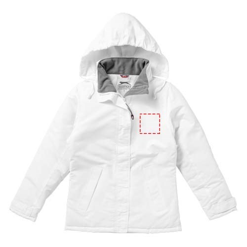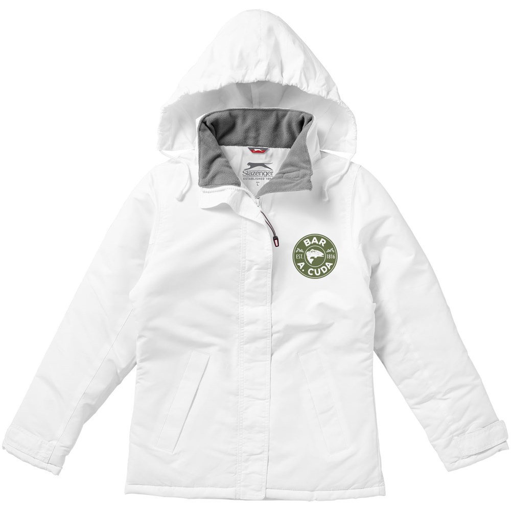 200mm wasserfest. Kapuze mit elastischer Öffnung, einrollbar . größenverstellbare Bündchen mit Klettverschluss. Tailliert für eine schmeichelhafte Passform. Fronttaschen. Halbmond. Aufhängeschlaufe. Transfer Hauptlabel für den etikettfreien Komfort.