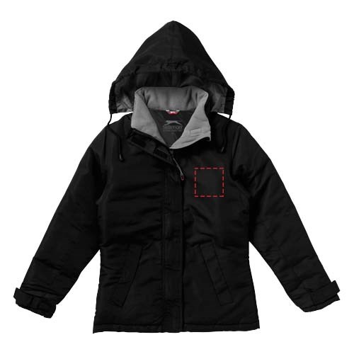 200mm wasserfest. Kapuze mit elastischer Öffnung, einrollbar . größenverstellbare Bündchen mit Klettverschluss. Tailliert für eine schmeichelhafte Passform. Fronttaschen. Halbmond. Aufhängeschlaufe. Transfer Hauptlabel für den etikettfreien Komfort.