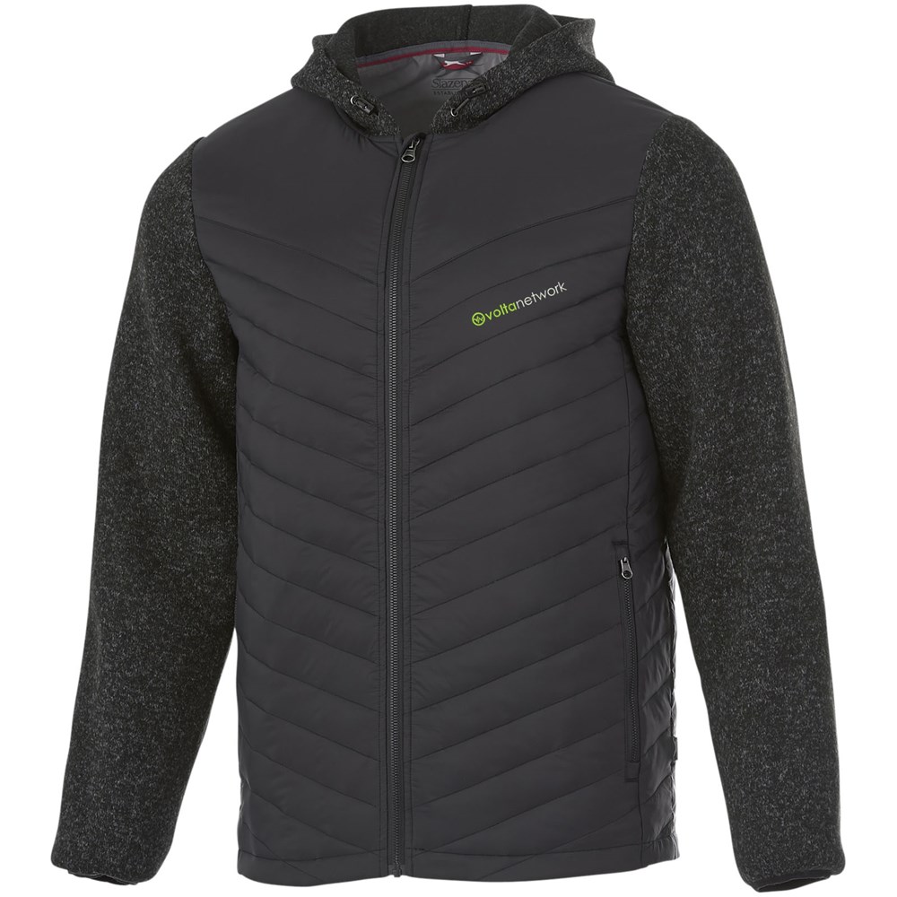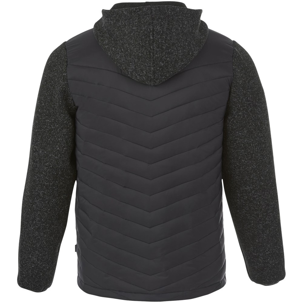 Steppgewebe mit Kontraststoff aus Strickgewebe. Mediatasche in der rechten Innentasche. Elastischer Kordelzug mit verstellbaren Stoppern. Seitentaschen mit Reißverschluss. Kinnschutz. Mittig sichtbarer Kunststoff Reißverschluss. Aufhängeschlaufe. 2-farbiges Nackenband. Label an Seitennaht. Transfer Hauptlabel für den etikettfreien Komfort..