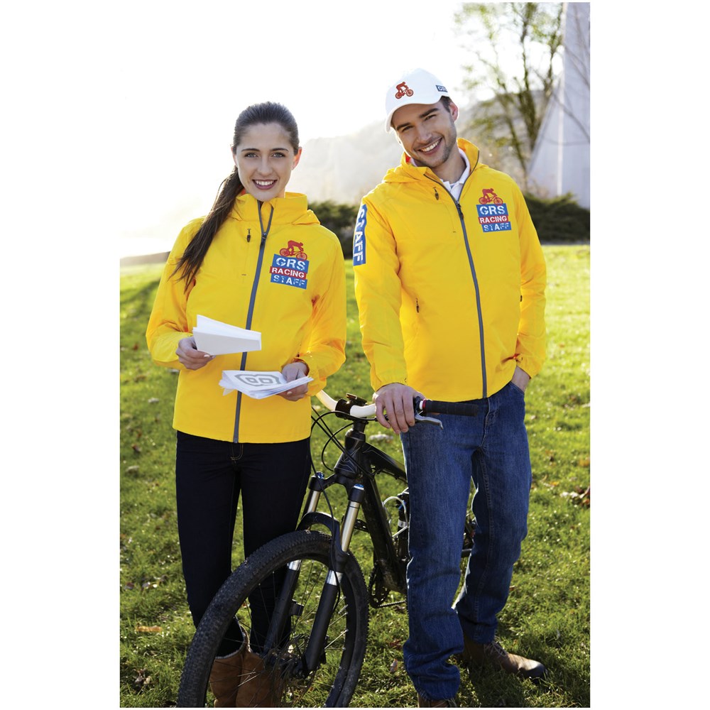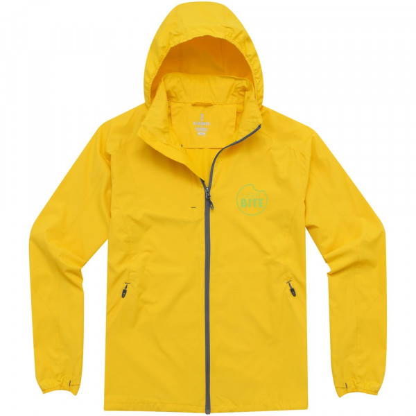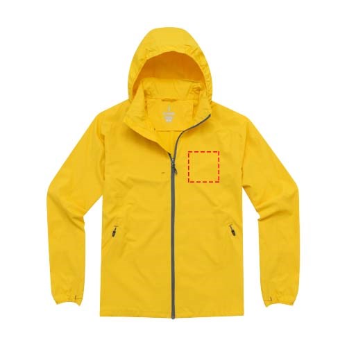 600 mm wasserfest. Kapuze mit elastischer Öffnung, einrollbar. Daumenlöcher. Brusttasche mit Reißverschluss. Belüftung an der hinteren Passe. Windschutz innen mit Kinnschutz. Kontrastfarbener 2-Wege-Spiralreißverschluss vorne in der Mitte. Reflektierende Details. Elastische Bündchen. Elastischer Kordelzug mit verstellbaren Stoppern.