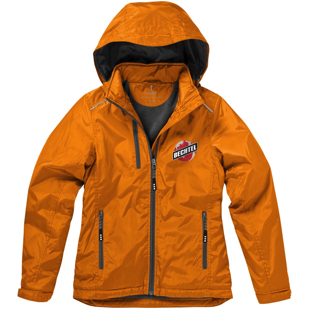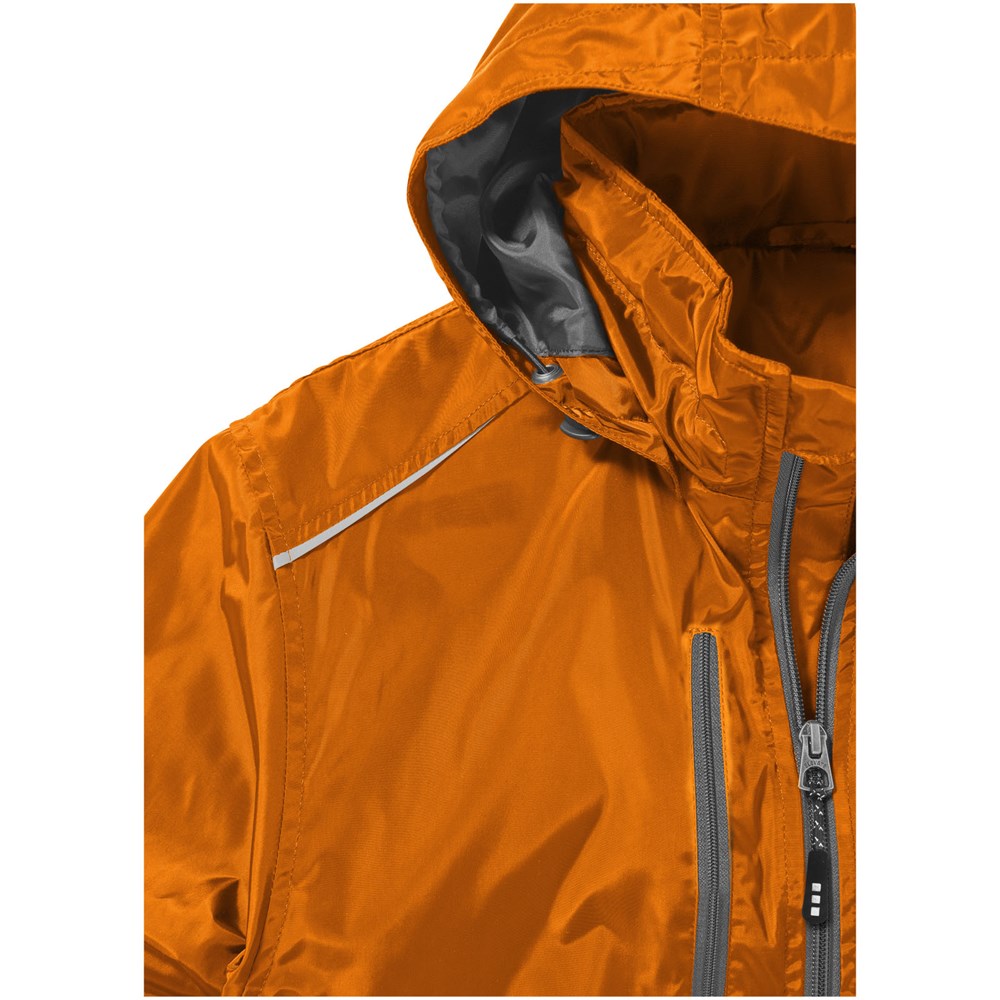 1000 mm wasserfest. Elastischer Kordelzug mit verstellbaren Stoppern. größenverstellbare Bündchen mit Klettverschluss. Abnehmbare Kapuze. Innentasche. Anliegende Seitenähte und tailliert für schmeichelnde Passform. Brusttasche mit Reißverschluss. Seitentaschen mit Reißverschluss. Reflektierende Details. Reißverschluss mit Kontrastband.
