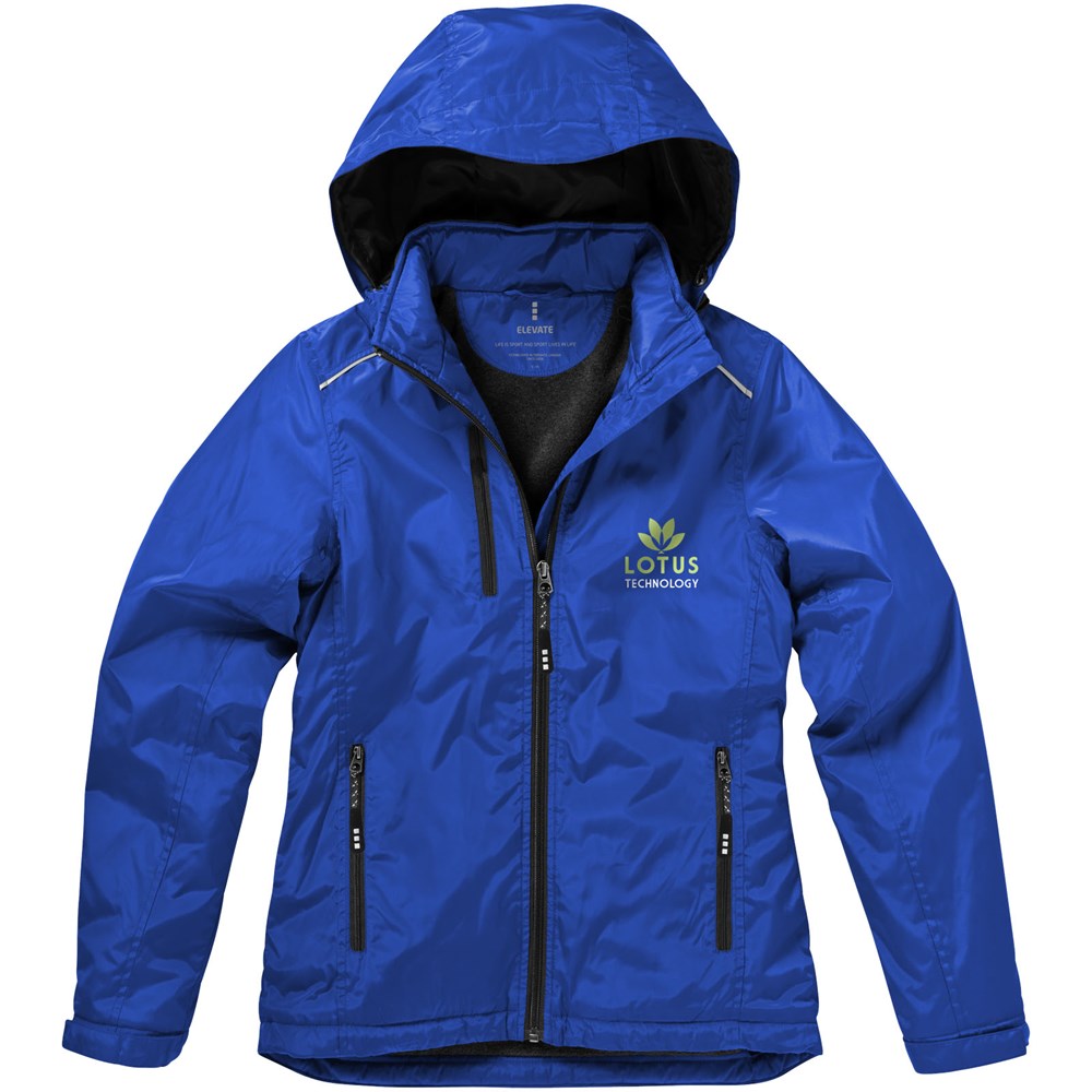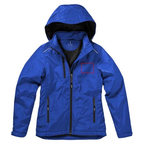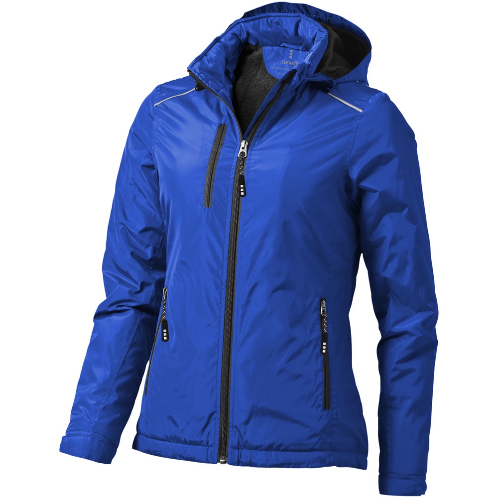 1000 mm wasserfest. Elastischer Kordelzug mit verstellbaren Stoppern. größenverstellbare Bündchen mit Klettverschluss. Abnehmbare Kapuze. Innentasche. Anliegende Seitenähte und tailliert für schmeichelnde Passform. Brusttasche mit Reißverschluss. Seitentaschen mit Reißverschluss. Reflektierende Details. Reißverschluss mit Kontrastband.