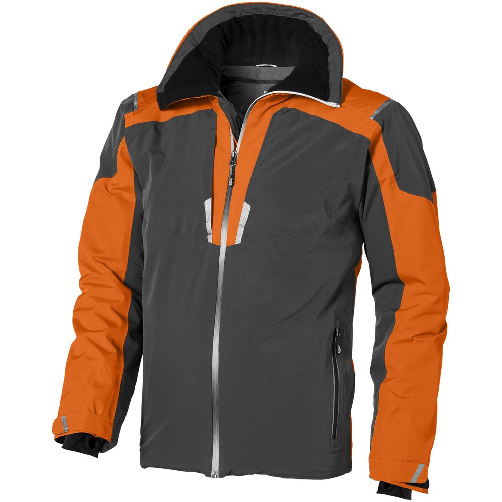 8.000 mm wasserfest und 500 g/m² atmungsaktiv. Verschweißte Nähte. Wasserdichter Reissverschluss. Echoheat™-Futter. Medienausgang innen mit Kabelführung. Elastische Strickbündchen mit Daumenloch. Innentasche mit Reißverschluss. Windschutz innen mit Kinnschutz. Abnehmbare Kapuze. Hinten länger als vorne.