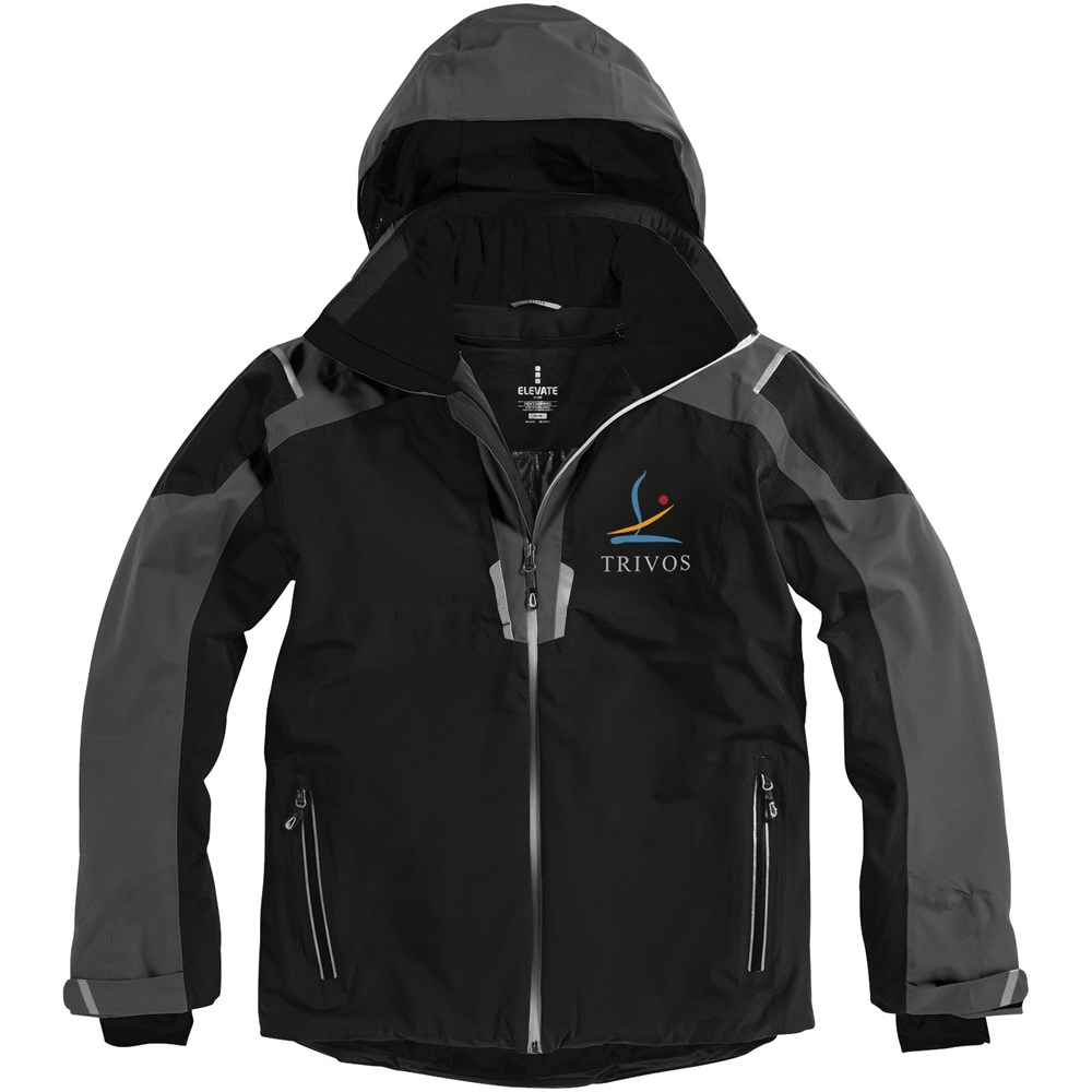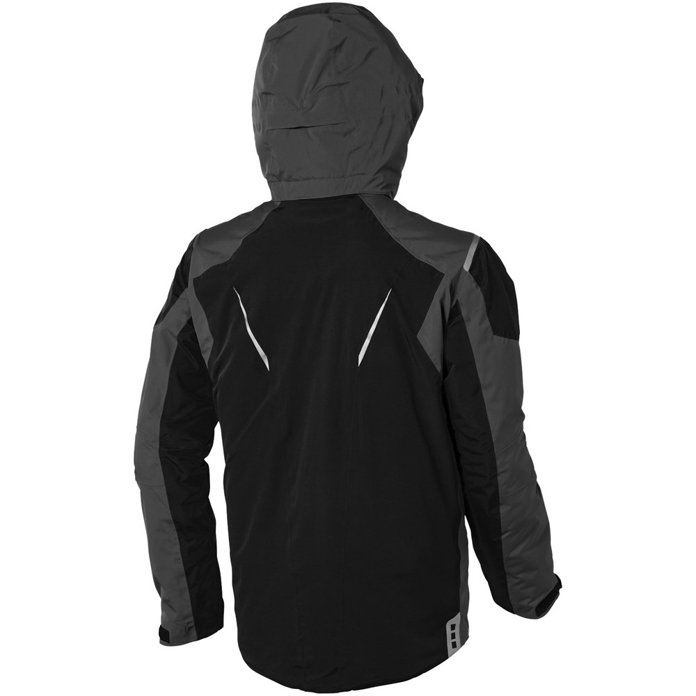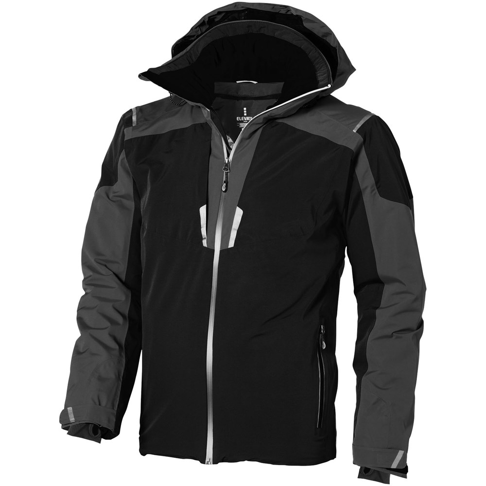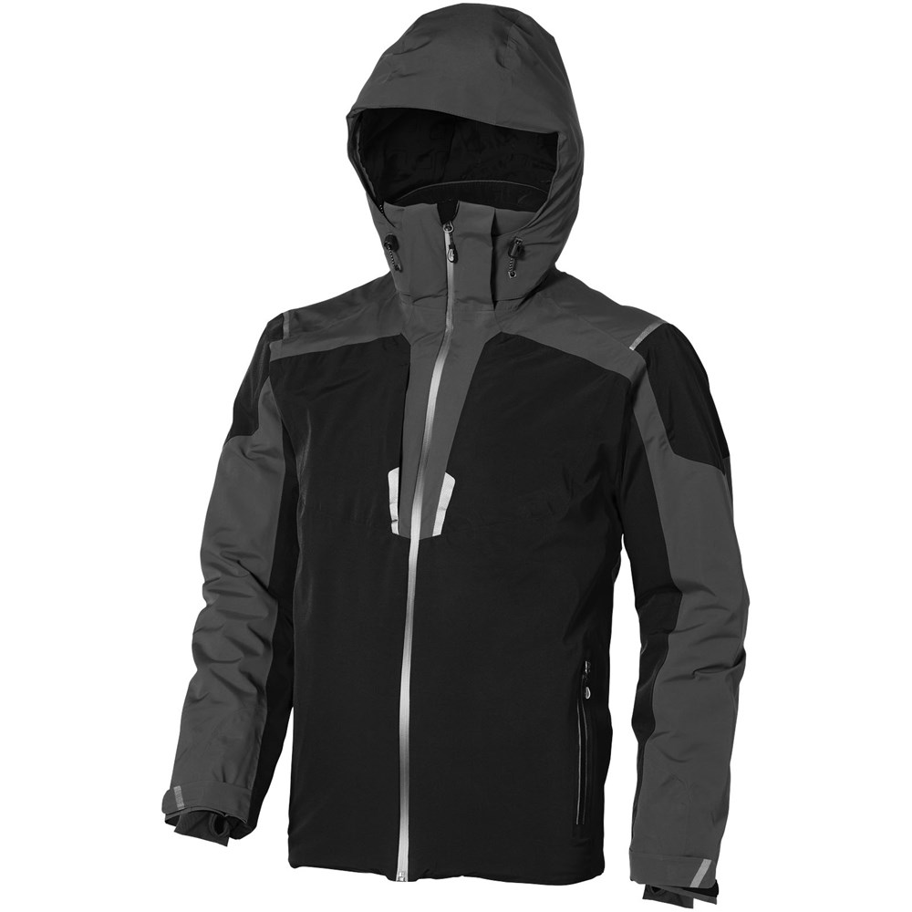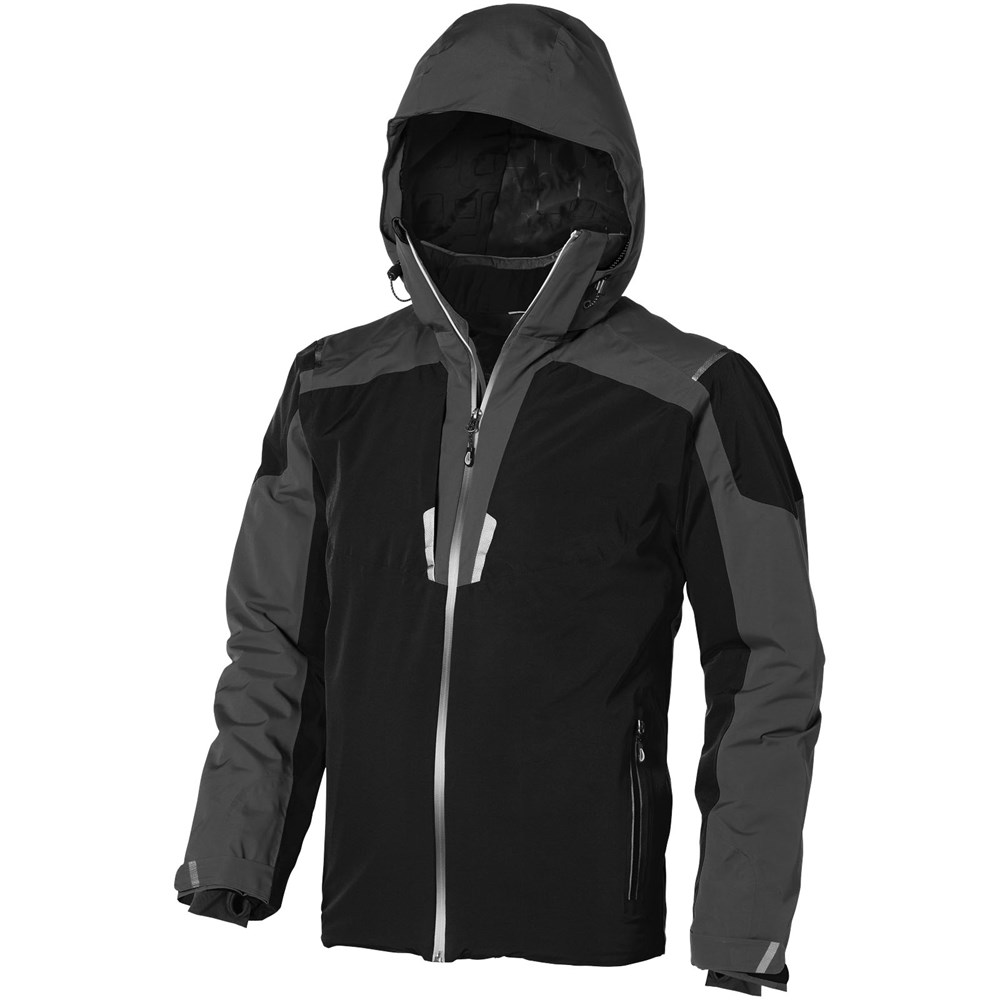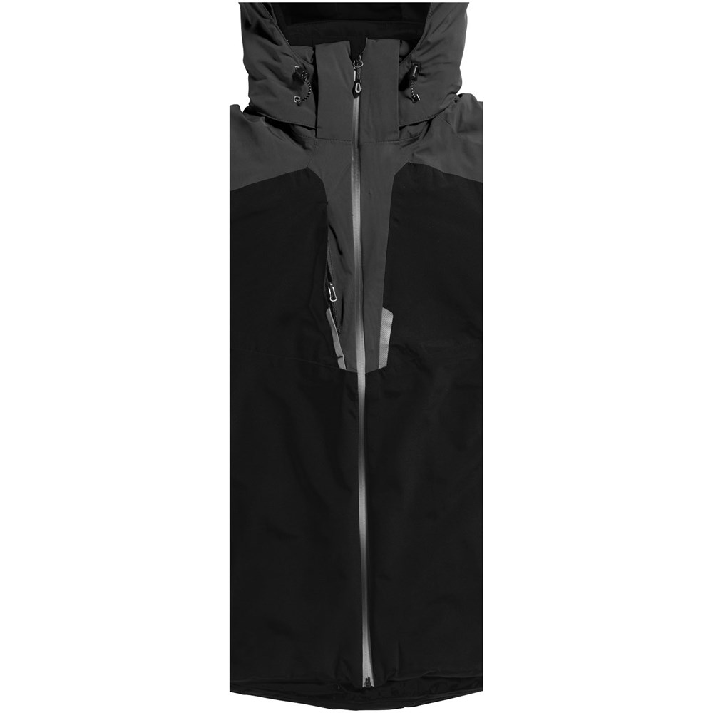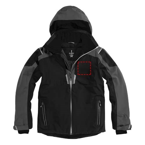 8.000 mm wasserfest und 500 g/m² atmungsaktiv. Verschweißte Nähte. Wasserdichter Reissverschluss. Echoheat™-Futter. Medienausgang innen mit Kabelführung. Elastische Strickbündchen mit Daumenloch. Innentasche mit Reißverschluss. Windschutz innen mit Kinnschutz. Abnehmbare Kapuze. Hinten länger als vorne.