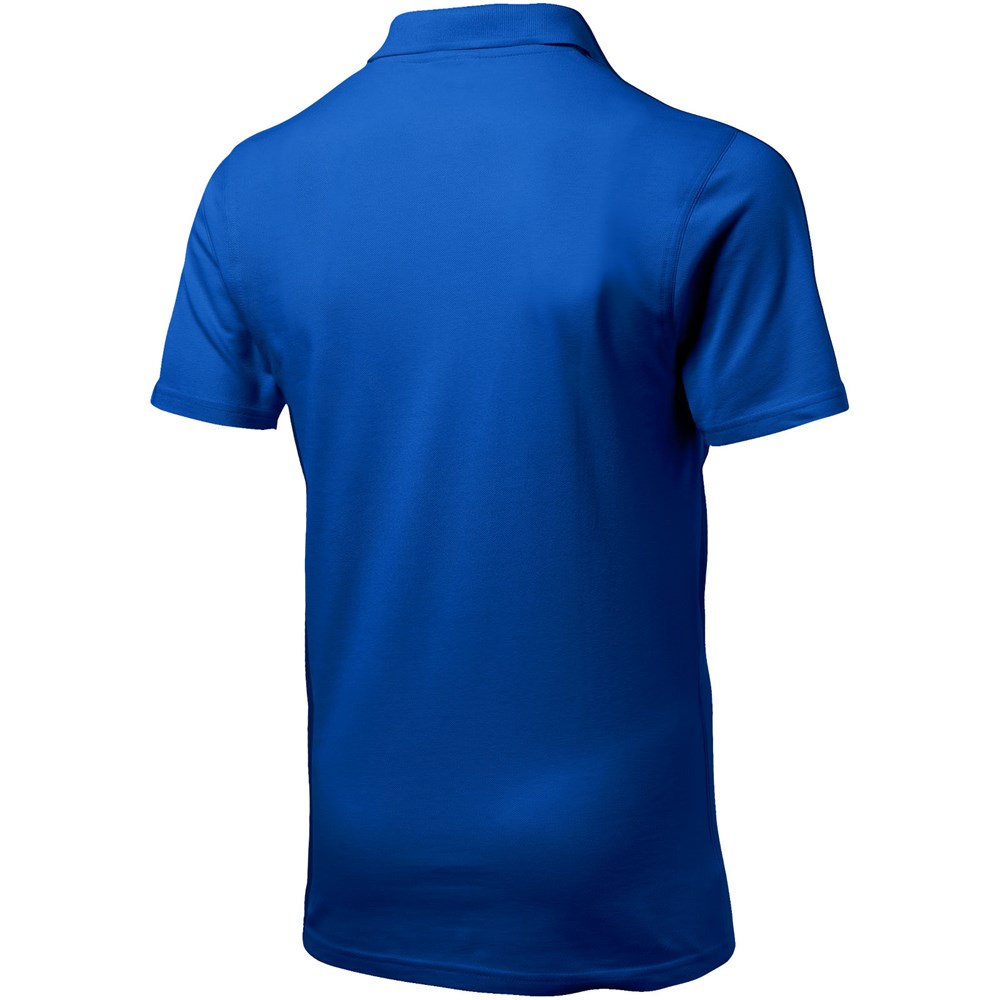 Flachstrickkragen. 2-er Knopfleiste mit gravierten Knöpfen. 2-farbiges Nackenband. Gravierte Ton-in-Ton Knöpfe. Transfer Hauptlabel für den etikettfreien Komfort.