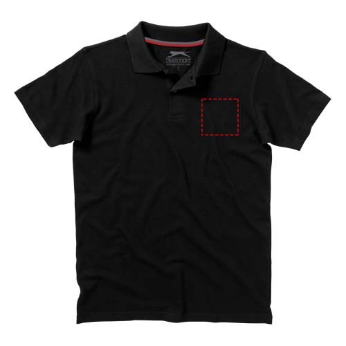 Flachstrickkragen. 2-er Knopfleiste mit gravierten Knöpfen. 2-farbiges Nackenband. Gravierte Ton-in-Ton Knöpfe. Transfer Hauptlabel für den etikettfreien Komfort.