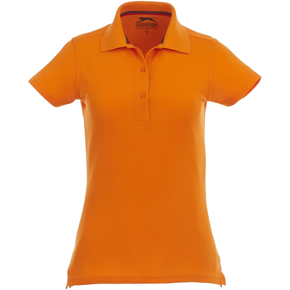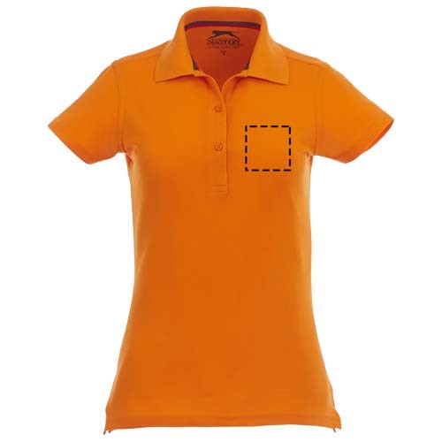 Flachstrickkragen. 3er-Knopfleiste. 2-farbiges Nackenband. Gravierte Ton-in-Ton Knöpfe. Transfer Hauptlabel für den etikettfreien Komfort.