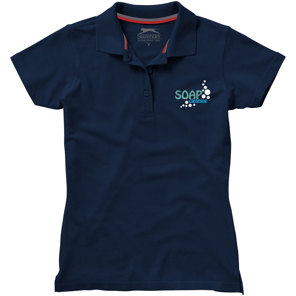 Flachstrickkragen. 3er-Knopfleiste. 2-farbiges Nackenband. Gravierte Ton-in-Ton Knöpfe. Transfer Hauptlabel für den etikettfreien Komfort.