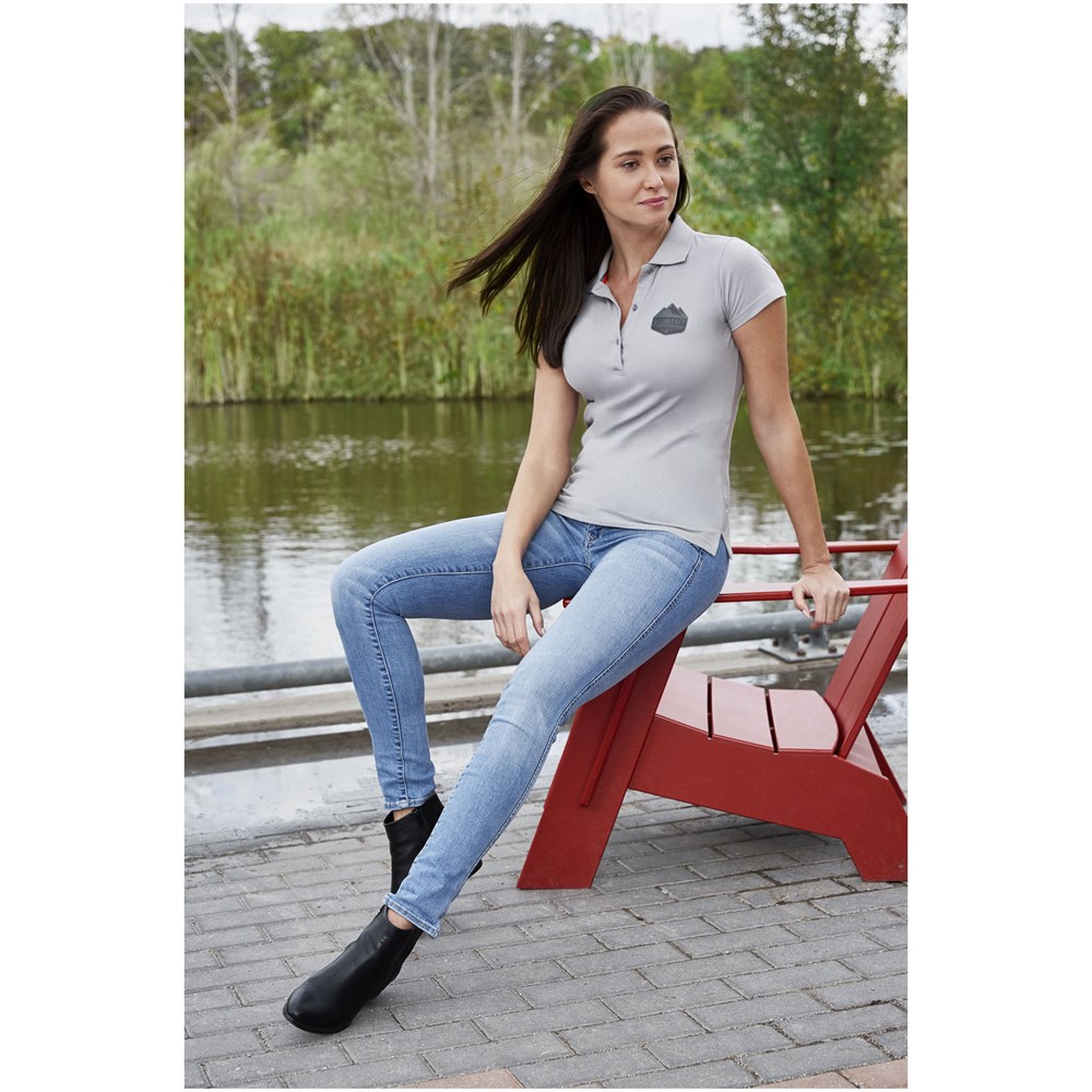 Flachstrickkragen. 3er-Knopfleiste. 2-farbiges Nackenband. Gravierte Ton-in-Ton Knöpfe. Transfer Hauptlabel für den etikettfreien Komfort.