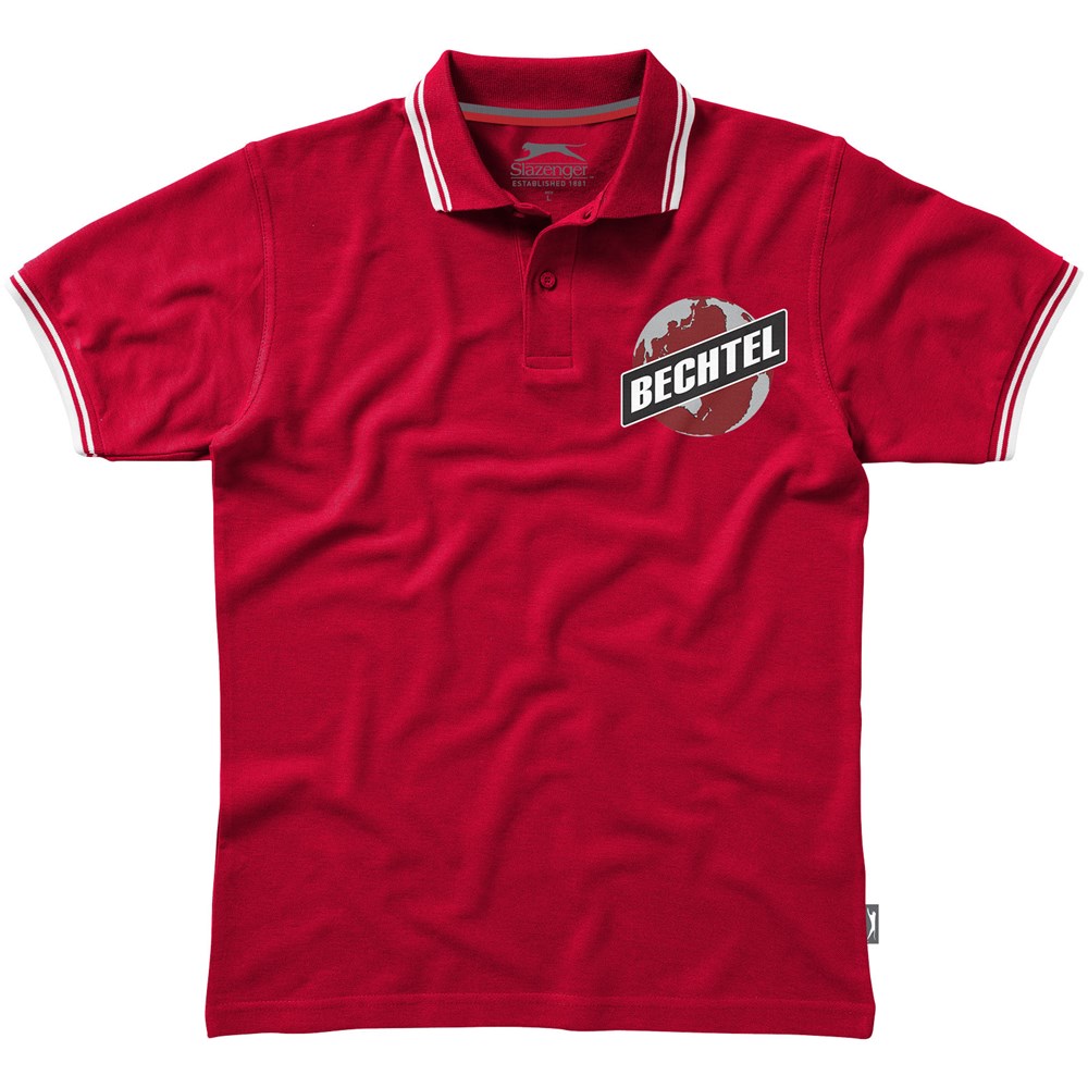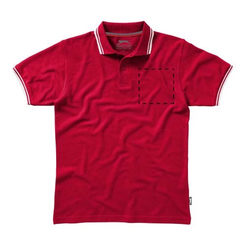 Flachstrickkragen. 1x1 Rippstrickkragen und Bund. Kontrastfarbige Streifen an Kragen und Ärmeln. 2-er Knopfleiste mit gravierten Knöpfen. 2-farbiges Nackenband. Gravierte Ton-in-Ton Knöpfe. Transfer Hauptlabel für den etikettfreien Komfort.. Label an Seitennaht.