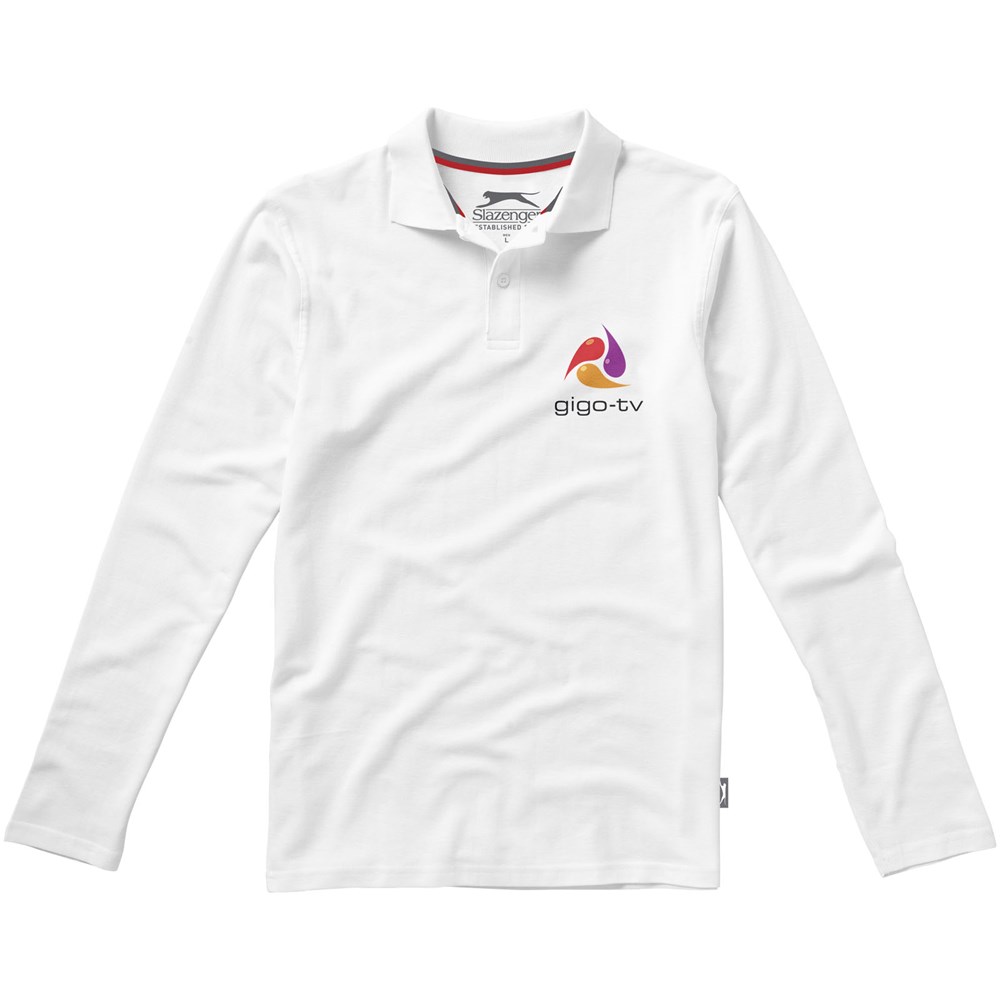 Flachstrickkragen. 2-er Knopfleiste mit gravierten Knöpfen. 2-farbiges Nackenband. Gravierte Ton-in-Ton Knöpfe. Transfer Hauptlabel für den etikettfreien Komfort.. Label an Seitennaht.
