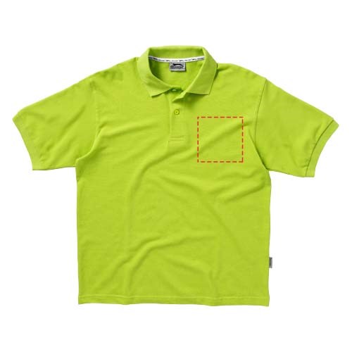 Flachstrickkragen. 1x1 Rippstrickkragen und Bund. Nackenband mit Fischgrätenmuster. 2-er Knopfleiste mit gravierten Knöpfen. Gravierte Ton-in-Ton Knöpfe. Label an Seitennaht. Transfer Hauptlabel für den etikettfreien Komfort.