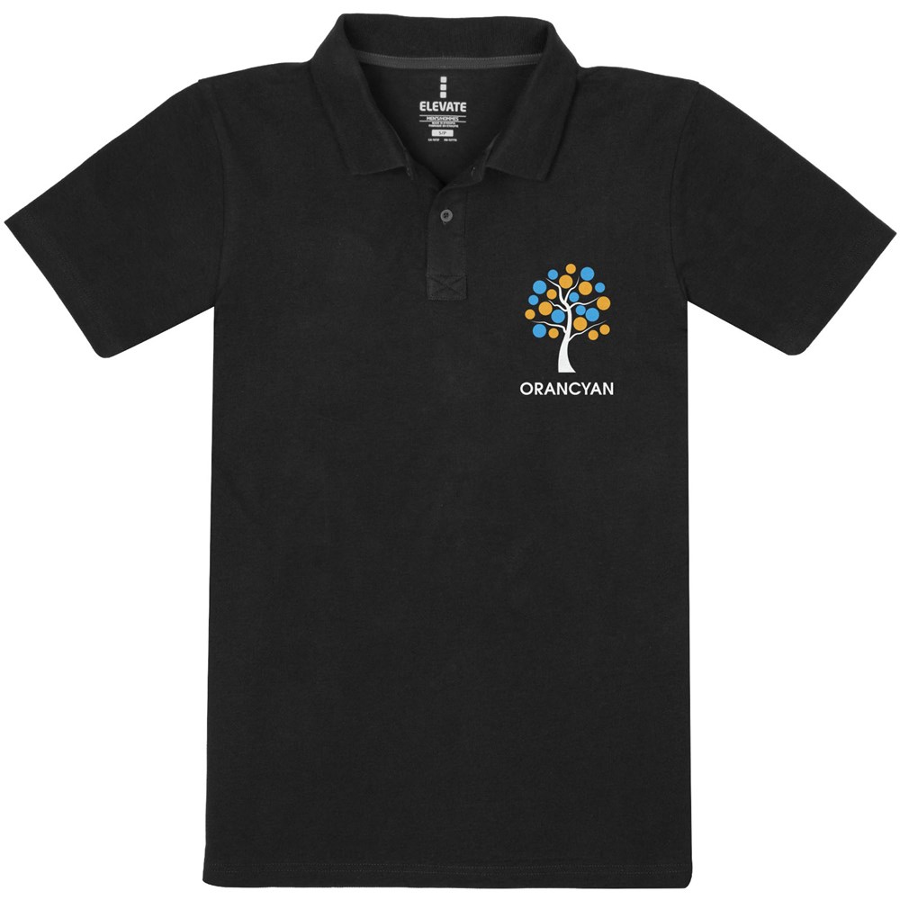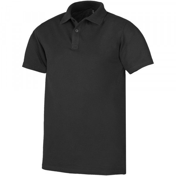 Flachstrickkragen. 2-er Knopfleiste mit gravierten Knöpfen. Doppelnaht an Kragen und Saum. Nackenband in Kontrastfarbe. Gravierte Ton-in-Ton Knöpfe. Transfer Hauptlabel für den etikettfreien Komfort..