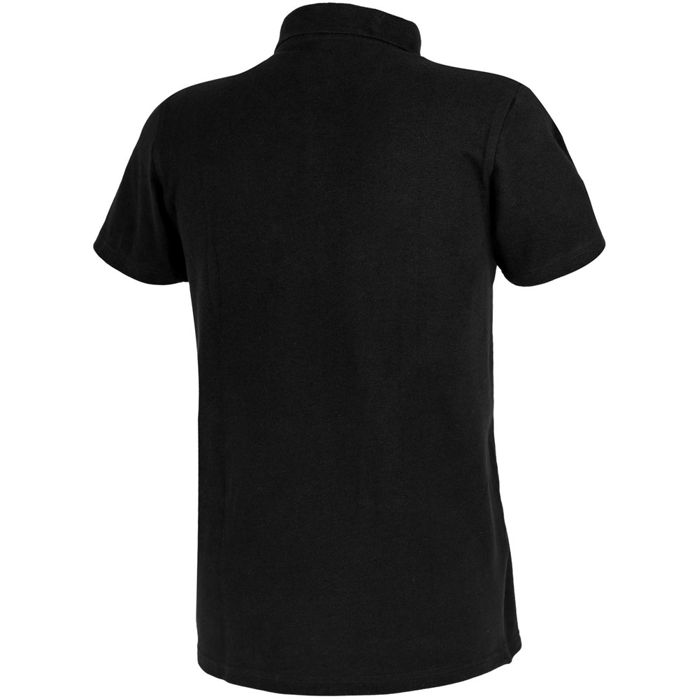 Flachstrickkragen. 2-er Knopfleiste mit gravierten Knöpfen. Doppelnaht an Kragen und Saum. Nackenband in Kontrastfarbe. Gravierte Ton-in-Ton Knöpfe. Transfer Hauptlabel für den etikettfreien Komfort..